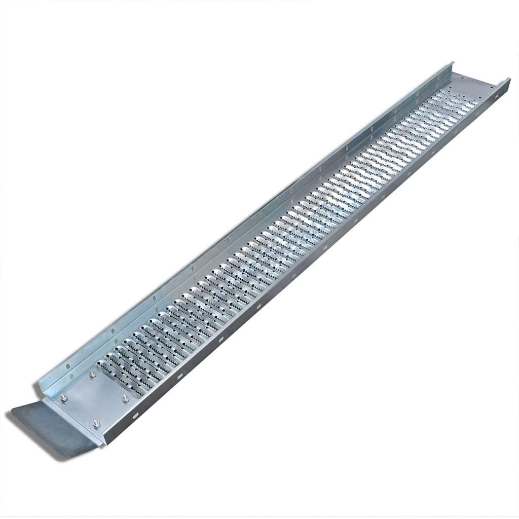 Diese Auffahrrampen sind ideal zum einfachen Be- und Entladen von ATVs, Quads, Scootern, Golfbuggys usw. Sie haben ein rutschfestes Profil und bestehen aus hochwertigem verzinktem Stahl, wodurch sie sehr stabil und langlebig sind. Sie können einer Belastung von 450 kg, wenn als Paar verwendet, standhalten. Der Lieferumfang umfasst 2 Auffahrrampen.