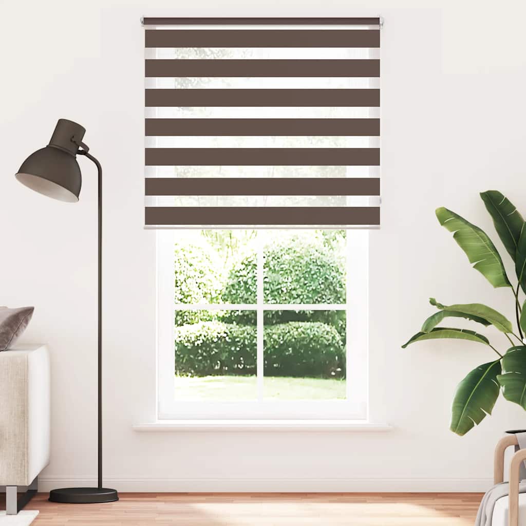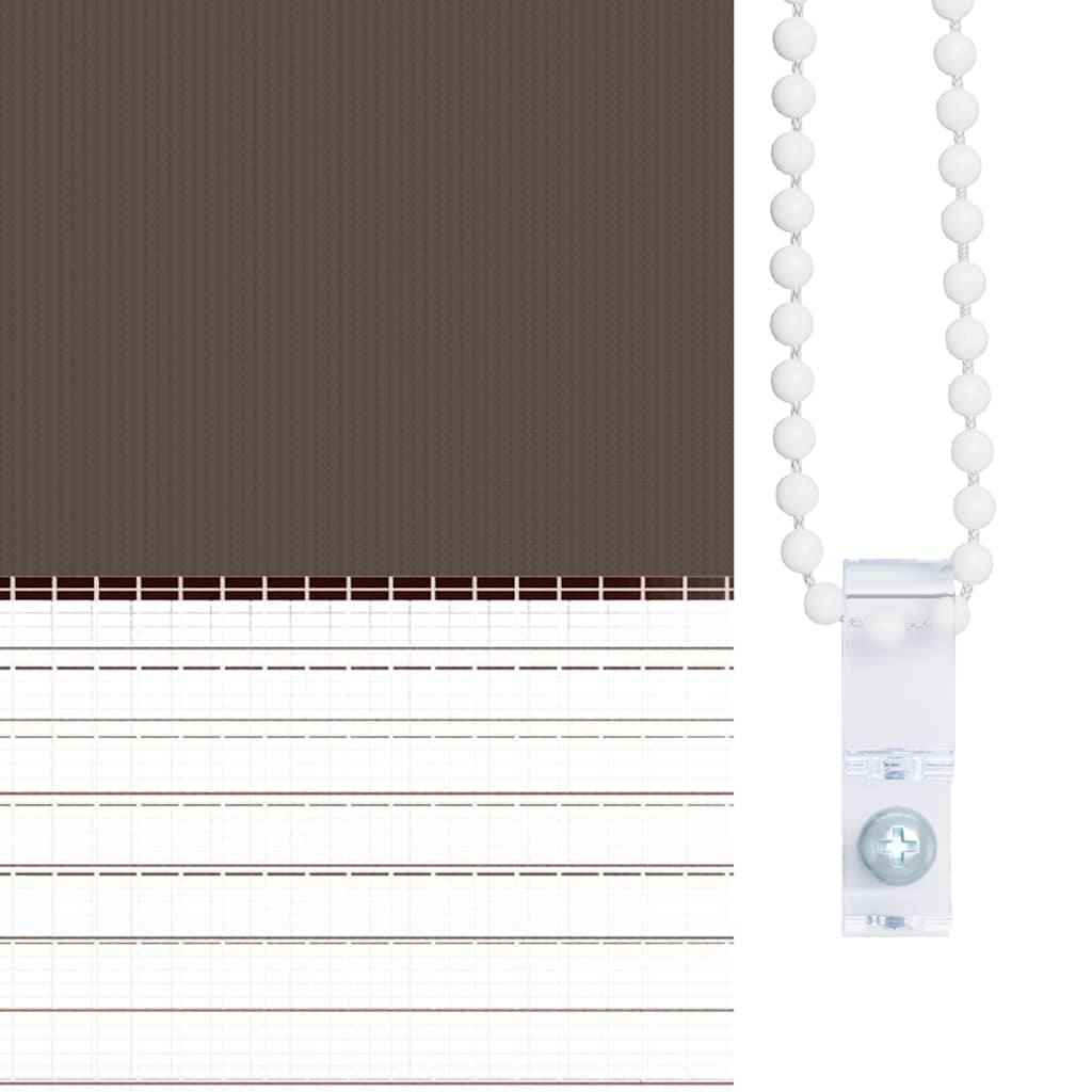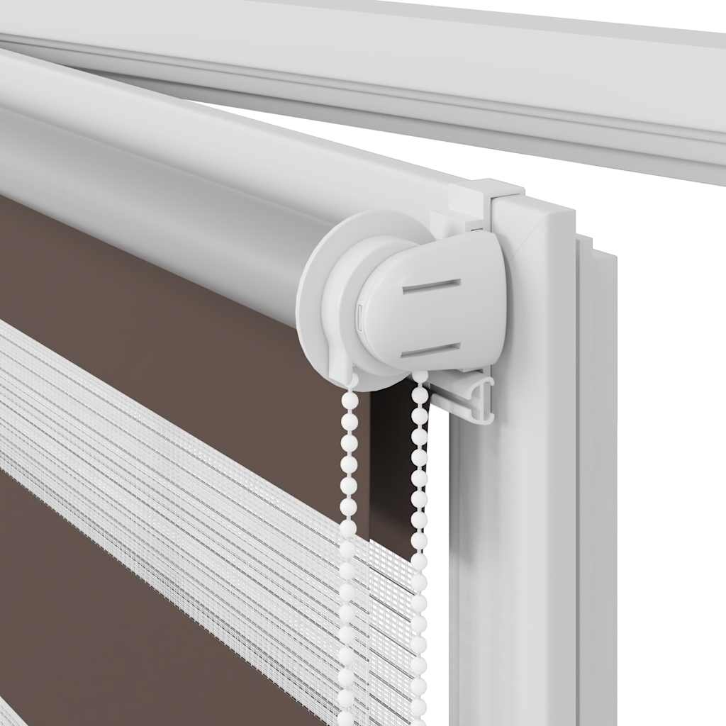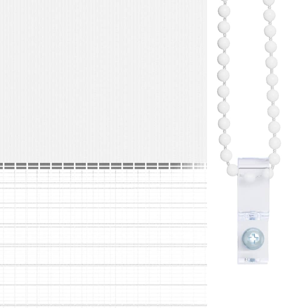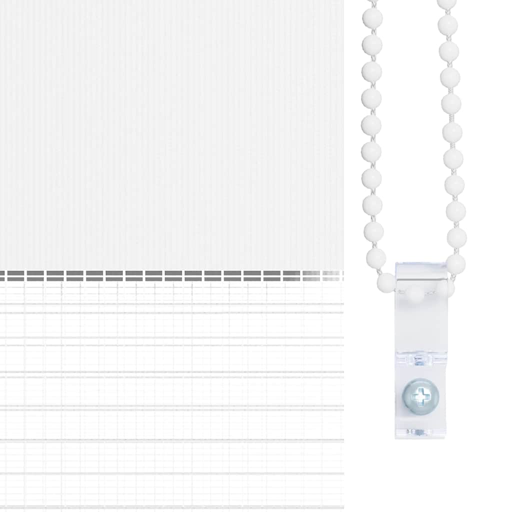 Den neusten Trend in Sachen Licht- und Sichtschutz bietet Ihnen dieses hochwertig verarbeitete Doppelrollo. Durch die 2 parallel verlaufenden Stoffbahnen mit abwechselnd gewebten, transparenten und blickdichten Streifen können Sie mit Hilfe des Kettenzuges das einfallende Licht ganz individuell dosieren. Dabei entstehen wundervolle Lichtspiele. Einfache Bedienung durch Seitenzugkette, das Rollo kann in jeder Höhe gestoppt werden, dies ermöglicht eine komplette oder auf Wunsch nur teilweise Verdunklung des jeweiligen Raumes. Die Klemmhalter werden einfach auf die Innenkante des oberen Fenster-flügels gesetzt. Jegliches Bohren entfällt. Material:100 % Polyester, mit Metallwelle 18 mm (Durchmesser) Kette 2 m lang, Kettenfarbe: weiß Bitte beachten Sie, dass hier angegebene Bestellmaß ist das Trägeraußenmaß, das Stoffmaß des Rollos ist ca. 3 cm geringer. WARNUNG: Kleine Kinder könnten von Schlaufen in Zugschnüren, Ketten, Bändern oder Innenschnüren, welche das Produkt betreiben, stranguliert werden. Um Strangulation oder Verfangen zu vermeiden, halten Sie Schnüre und Kordeln außerhalb der Reichweite von kleinen Kindern. Schnüre könnten sich um den Hals des Kindes wickeln. Schieben Sie Möbel wie Betten oder Kinderbetten weg von Fensterrolloschnüren. Knoten Sie die Schnüre nicht aneinander. Stellen Sie sicher, dass die Schnüre sich nicht verwickeln und keine Schlaufen bilden. Lieferumfang: 1 x 40 cm obere Aluminiumschiene mit 37 x 100 cm Stoff in Zebramuster 1 x 40 cm obere Schiene, 1 x 40 cm schwere untere Schiene 2 x Haken, 2 x Bügel, 1 x Kettenhalter, 2 x Dichtungsring und 1 x Kugelkette