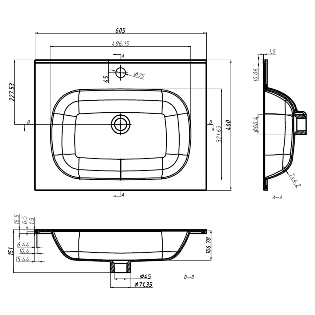 Einbauwaschbecken 605x460x105 mm SMC Weiß