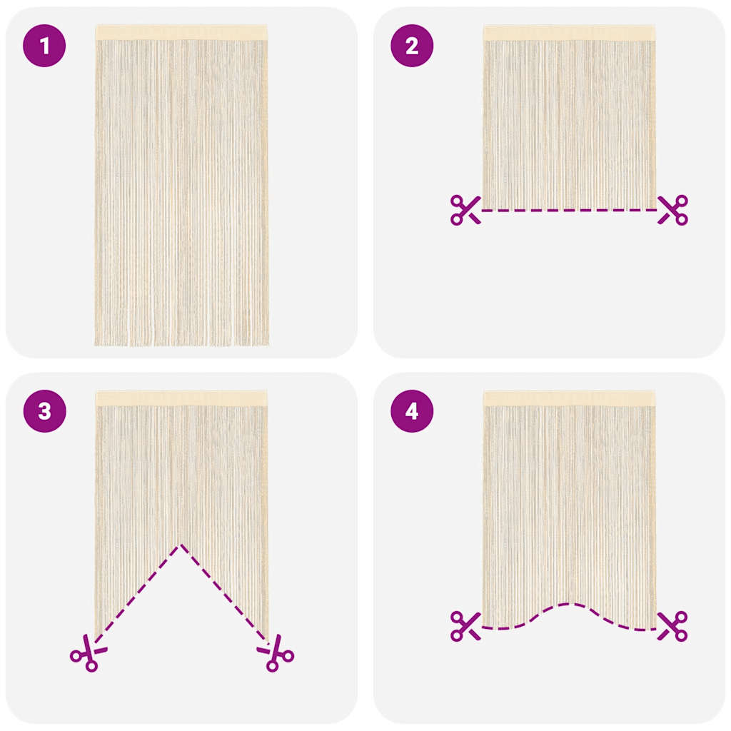 Verschönern Sie Ihre Wohnungseinrichtung mit unseren vielseitigen Fadenvorhängen! Sie lassen sich als Türvorhang, Fenstervorhang, Insektenschutz, Raumteiler oder auch als Schaufensterdekoration einsetzen.Die Vorhänge bestehen aus 100% Polyester und lassen sich bei niedrigen Temperaturen waschen. Bei Bedarf sind die Vorhänge ganz einfach auf die gewünschte Länge kürzbar. Für die Einfache Verwendung mit einer Gardinenstange sind unsere Vorhänge an der Oberseite mit einem Tunneldurchzug ausgestattet. Die Lieferung beinhaltet 2 Vorhänge. Die Gardinenstange ist nicht im Lieferumfang enthalten.