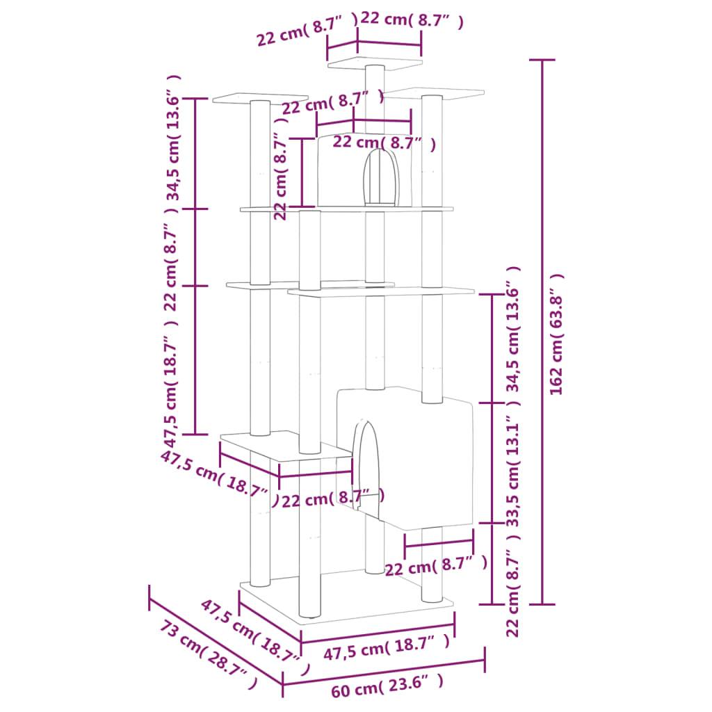 Kratzbaum mit Sisal-Kratzsäulen Creme 162 cm