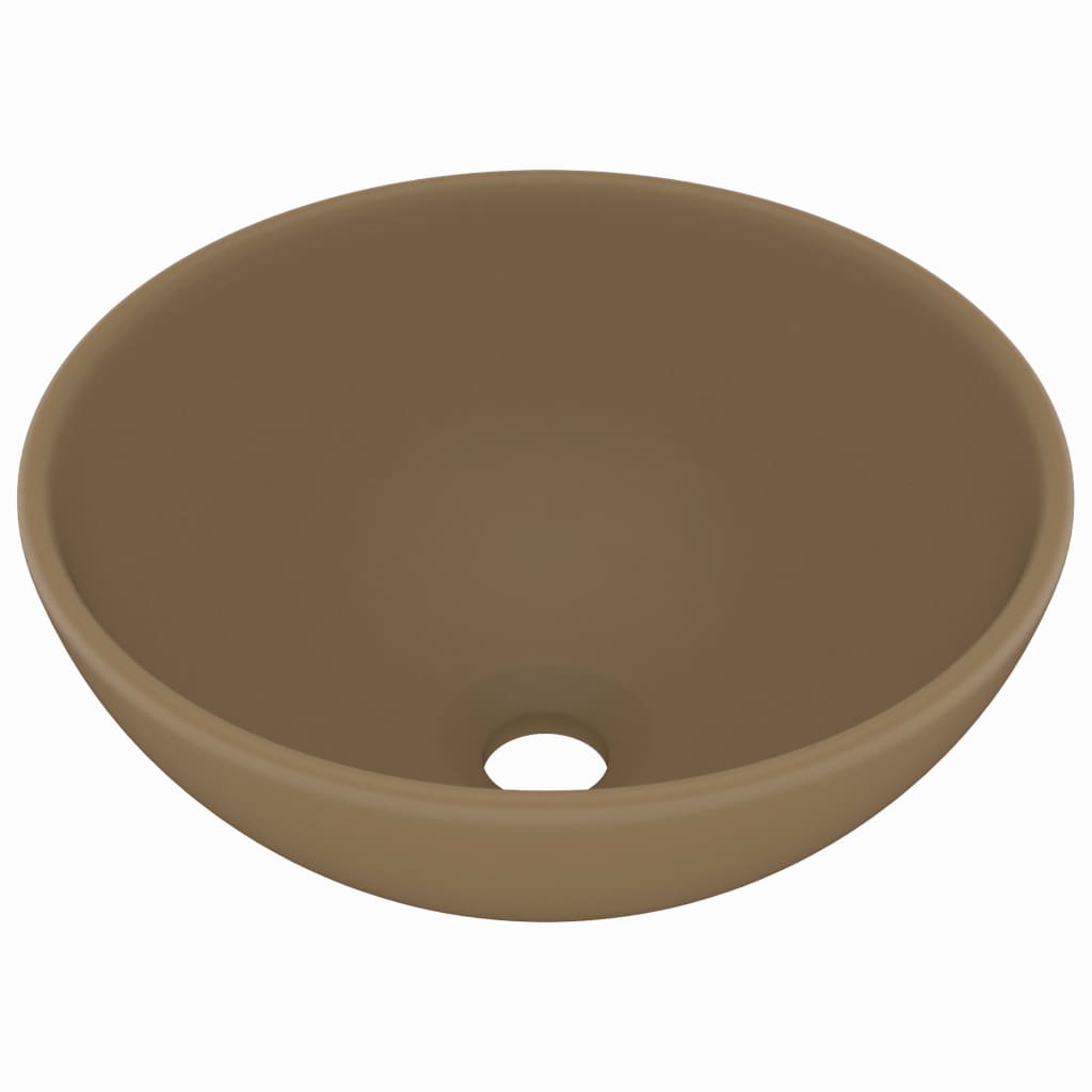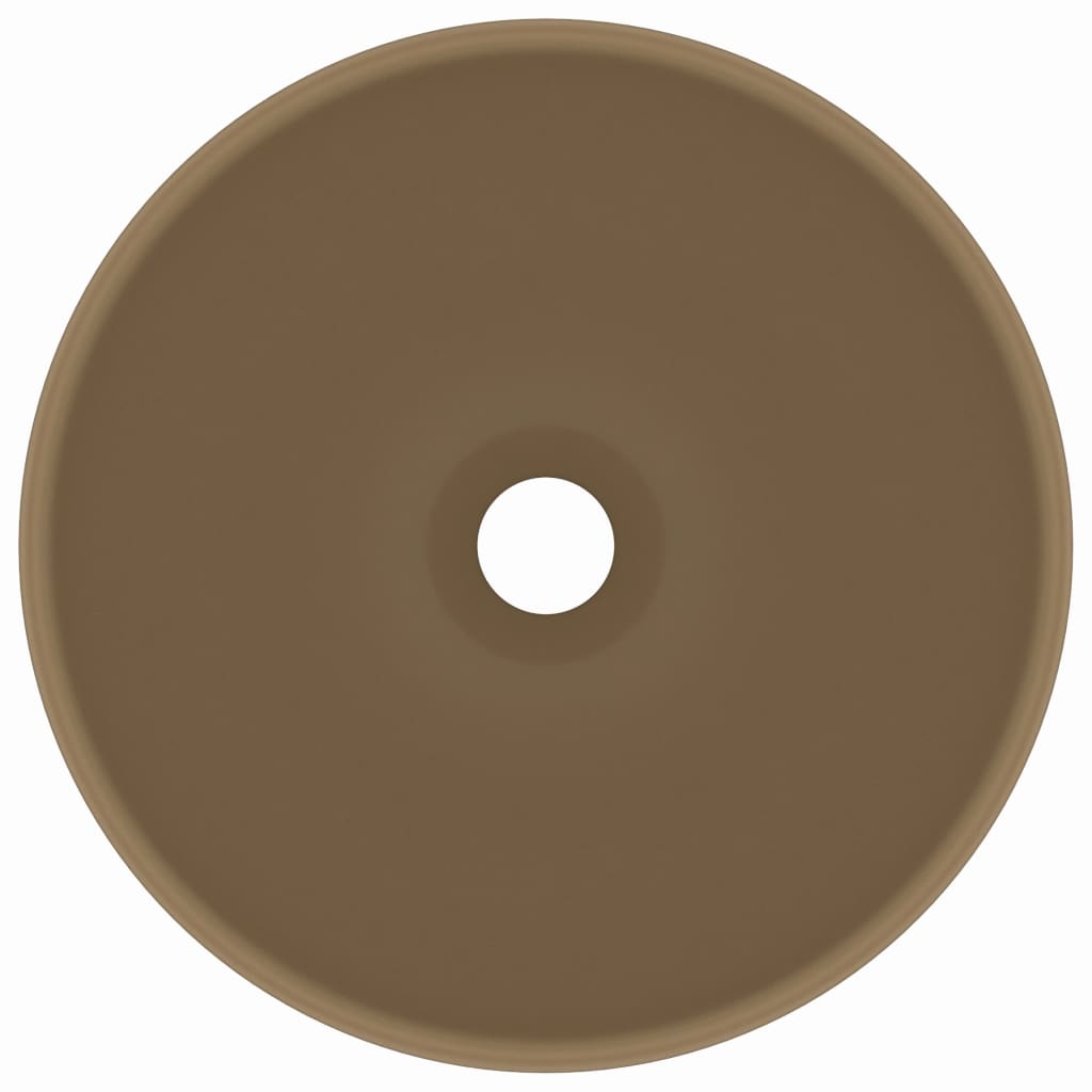 Dieses runde Waschbecken aus Premium-Keramik ist eine perfekte stilvolle Ergänzung zu Ihrem Badezimmer, Waschraum oder Puderraum. Seine matte Oberfläche und sein luxuriöses Design verleihen ihm ein modernes und zugleich elegantes Design. Dieses kunstvolle Keramikbecken ist mehr als nur ein praktisches Becken für den täglichen Gebrauch. Es ist ein Schmuckstück für Ihren Wohnraum. Dieses Waschbecken kann auf die Badezimmerkonsole gestellt und auch im Kosmetikraum, in der Garage, Küche oder am Arbeitsplatz verwendet werden. Es passt ohne Zweifel zu jedem Einrichtungsstil und ist recht einfach zu reinigen. Das Abflussloch hat einen Durchmesser von 4,5 cm. Bitte beachten Sie: Abflussrohre sind nicht im Lieferumfang enthalten.