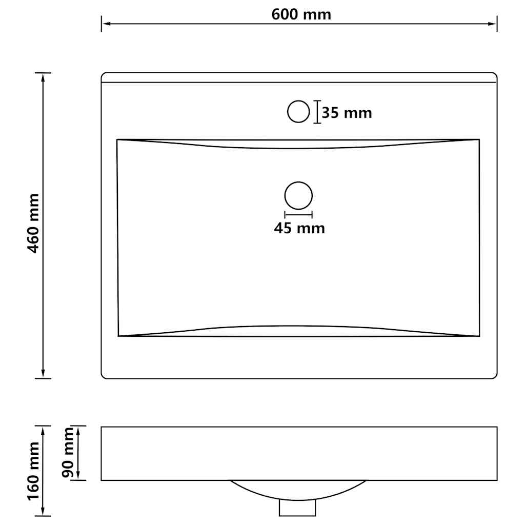 Das rechteckige Waschbecken aus Premium-Keramik ist eine stilvolle Ergänzung für jedes Badezimmer, jeden Waschraum und jeden Puderraum. Seine matte Oberfläche und sein luxuriöses Design verleihen ihm ein modernes und zugleich elegantes Design. Dieses kunstvolle Keramikbecken ist mehr als nur ein praktisches Becken für den täglichen Gebrauch, es ist eine Zierde für Ihren Wohnraum. Dieses Waschbecken kann auf auch im Kosmetikraum, in der Garage, in der Küche oder am Arbeitsplatz verwendet werden. Es passt definitiv zu jedem Einrichtungsstil und ist recht einfach zu reinigen. Zusätzlich kann dieses Becken sowohl als Hänge- als auch Einbau-Waschbecken verwendet werden. Ein Wasserhahnloch ist für die Installation eines Wasserhahns und ein Überlaufloch für den Wasserausfluss sind vorgebohrt. Das Abflussloch hat einen Durchmesser von 4,5 cm. Bitte beachten Sie: Das Abflussrohr ist nicht im Lieferumfang enthalten. Wenn Sie dieses Waschbecken an der Wand montieren möchten, muss es von Stockschrauben getragen werden. Bitte beachten: Stockschrauben nicht im Lieferumfang enthalten.
