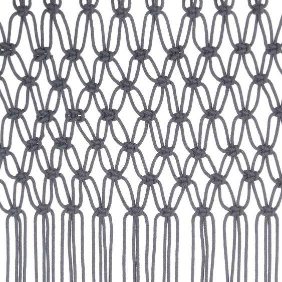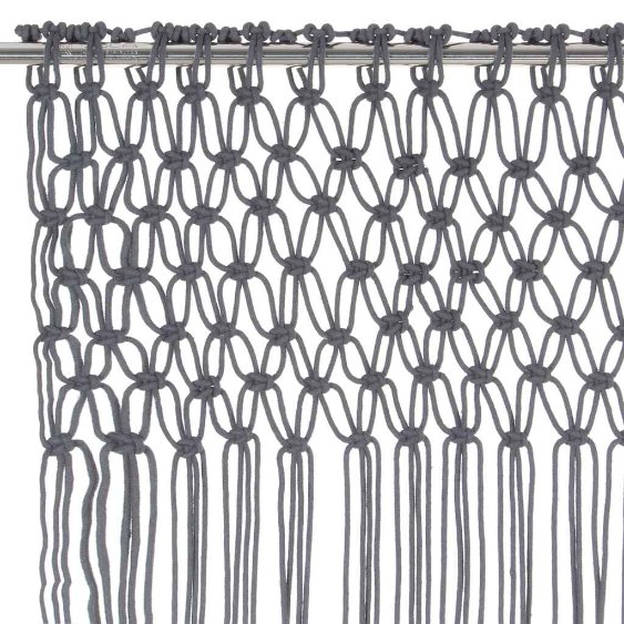 Diese praktische Fadengardine mit Makramee ist eine großartige Möglichkeit, Ihr Interieur zu dekorieren. Sie kann als Türvorhang, Fenstervorhang, Raumteiler oder Hintergrund für eine Schaufensteranzeige verwendet werden. Der Vorhang besteht aus Baumwolle und ist bei niedrigen Temperaturen waschbar. Bei Bedarf lässt sich der Vorhang leicht auf jede gewünschte Größe zuschneiden. Der Vorhang hat eine Tunneloberseite, die das Anbringen an einer Gardinenstange erleichtert. Bitte beachten Sie, dass die Gardinenstange nicht im Lieferumfang enthalten ist.