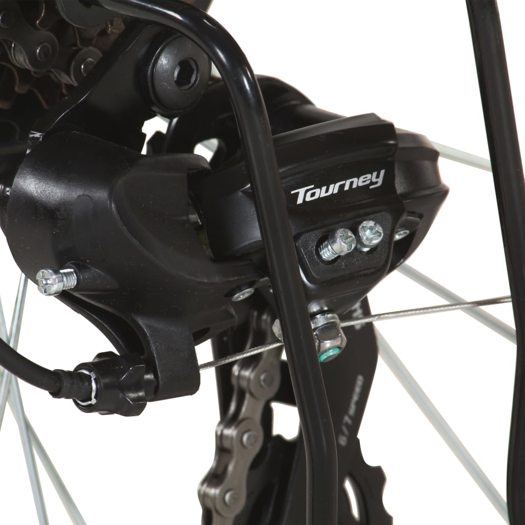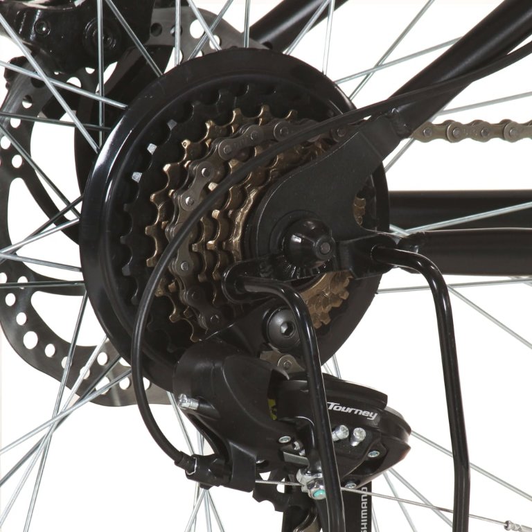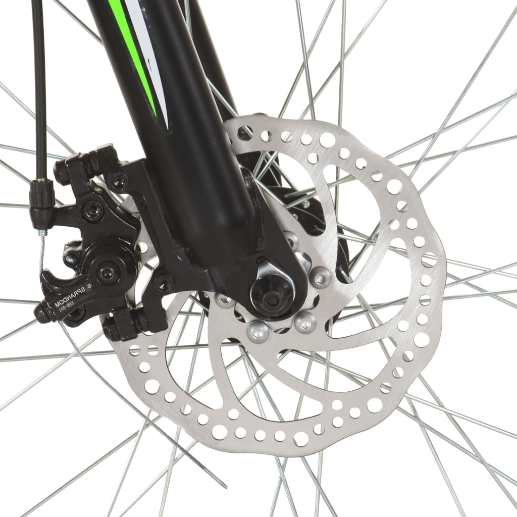 Dieses Mountainbike mit 26"-Rädern ist sehr bergfreundlich und bietet dir selbst auf unwegsamem Gelände ein angenehmes Fahrerlebnis. Stabiler Rahmen: Der Stahlrahmen und die Federgabel sorgen für Fahrkomfort, während die starken und dennoch leichten Felgen aus Aluminium zusätzliche Stabilität bieten.Praktisches Design: Motivation kommt in Form eines 21-Gang-Antriebs mit einer vorderen und hinteren Kettenschaltung. Die Sattelstütze lässt sich ohne Werkzeug verstellen, um im Handumdrehen eine komfortable Position zu genießen. So kannst du mit großer Leichtigkeit hoch- oder runterfahren. Die Scheibenbremsen gewährleisten einen sicheren Stopp unter allen Bedingungen.