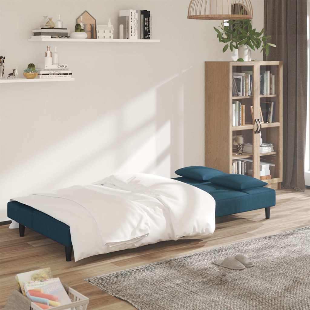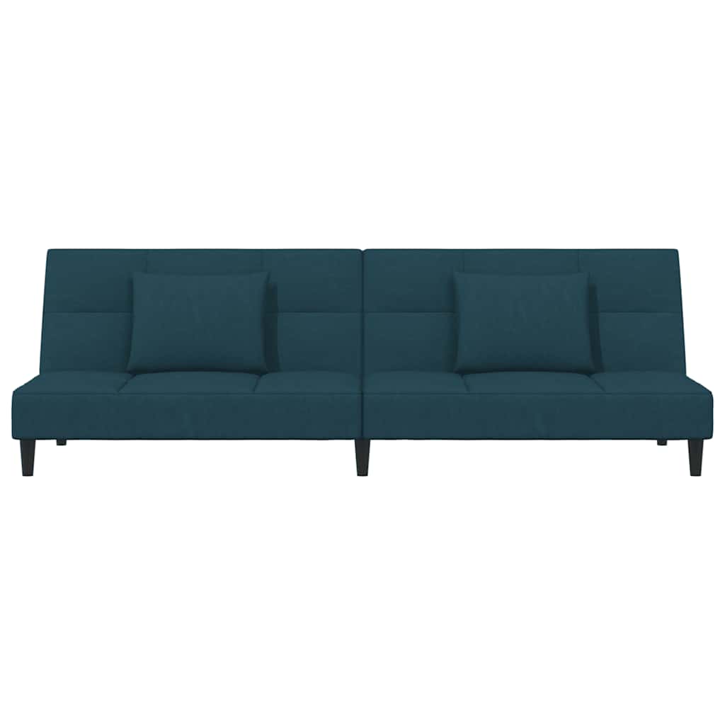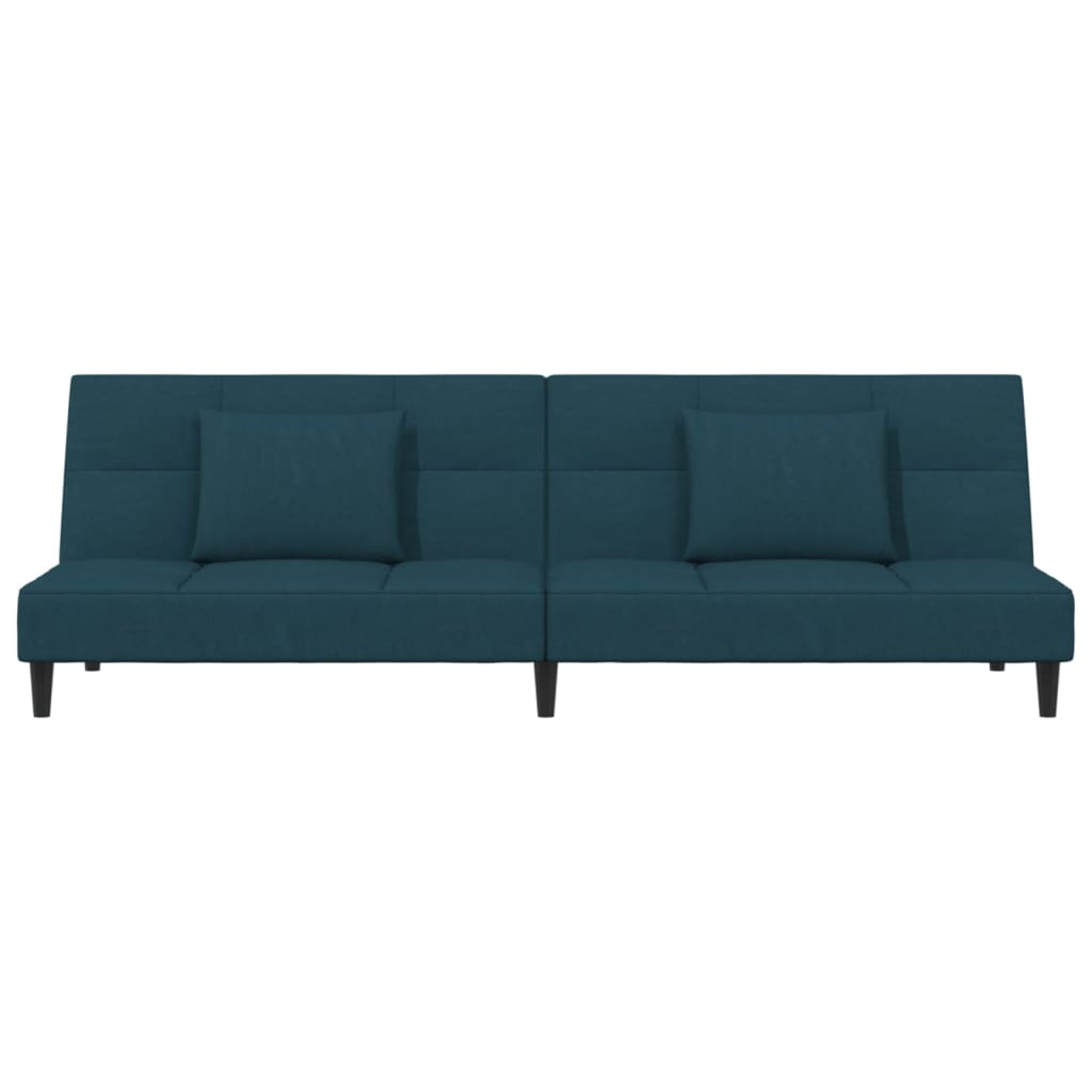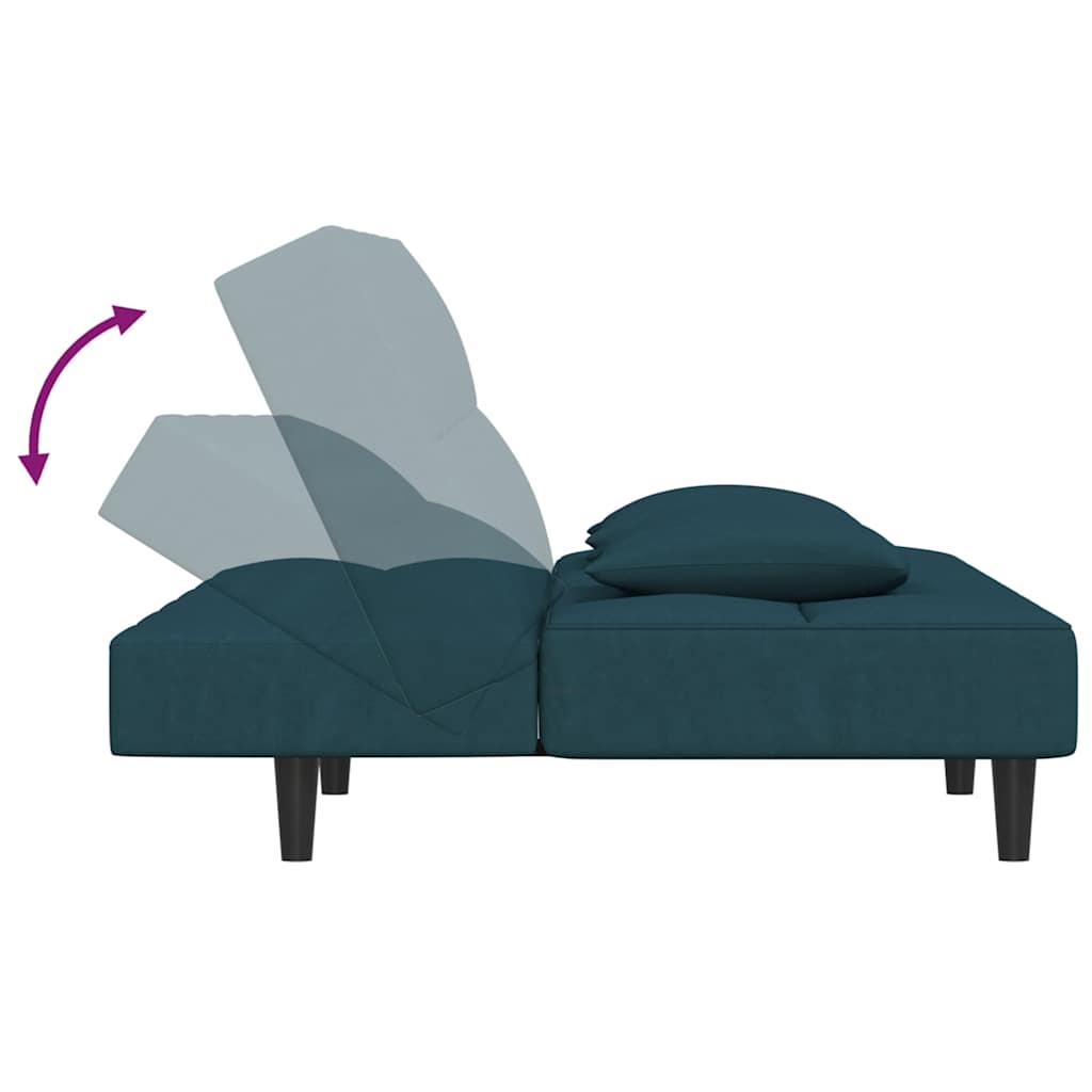 Schlafsofa 2-Sitzer mit 2 Kissen & Hocker Blau Samt