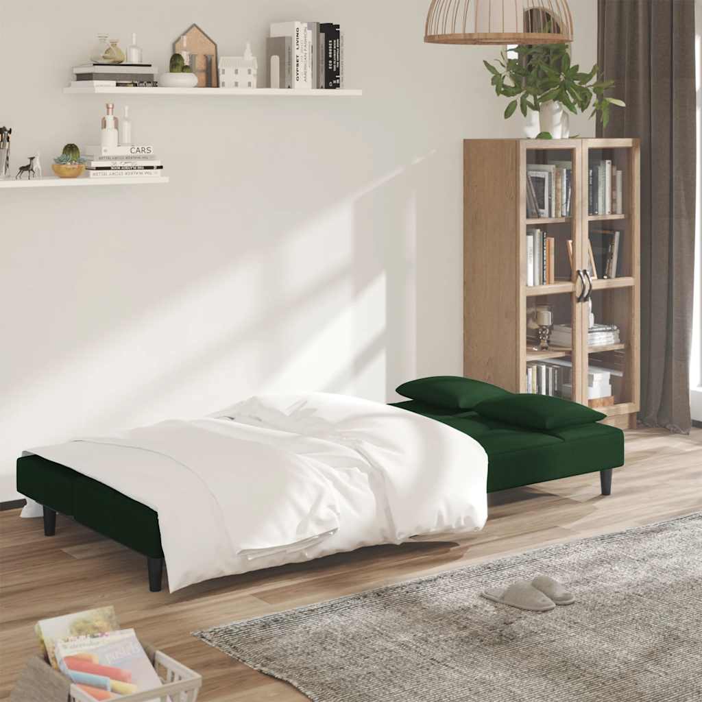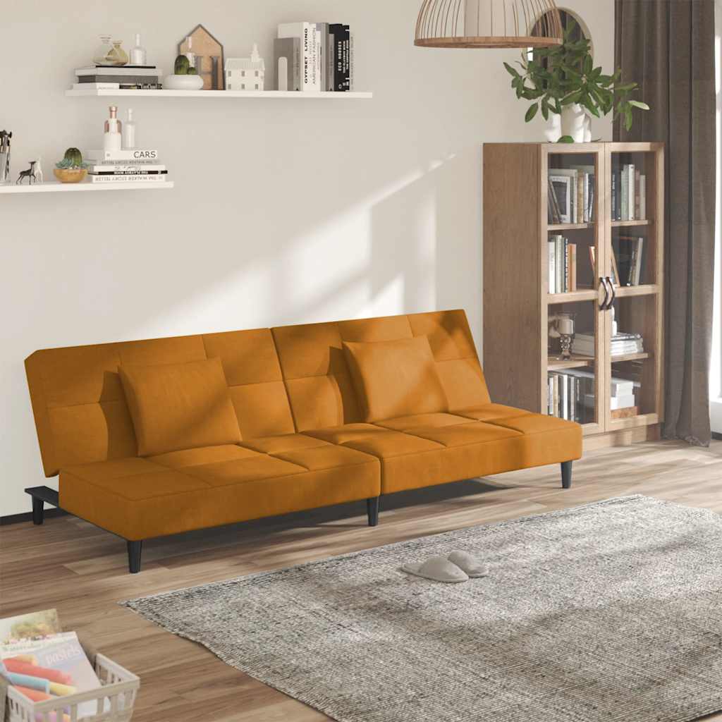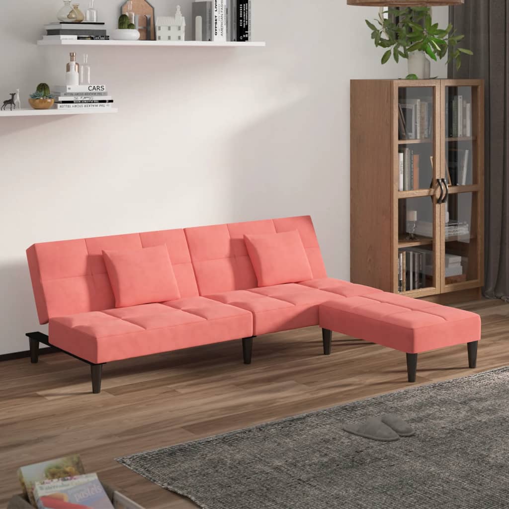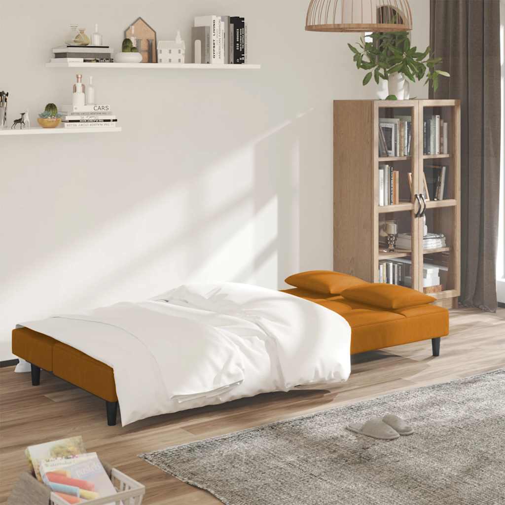 Dieses Schlafsofa ist die perfekte Lösung für die Unterbringung von Übernachtungsgästen und bietet tagsüber eine bequeme Sitzgelegenheit. Erstklassiges Material: Samt besitzt eine zarte Textur und fühlt sich weich und angenehm an.Robust und stabil: Der Holzrahmen sorgt für Robustheit und Stabilität.Vielseitig einsetzbar: Das Schlafsofa lässt sich ganz schnell und einfach von einem Sofa in ein Bett und wieder zurück verwandeln. Dabei können Sie die zwei separaten Kissen teilweise oder vollständig hinunterbringen, um den idealen Platz für ein Nickerchen oder ein Doppelbett zu schaffen.Zusätzlicher Komfort: Der Hocker bietet Platz zum Ausruhen der Füße am Ende des Tages, kann aber auch als zusätzliche Sitzgelegenheit im Wohnzimmer oder Eingangsbereich dienen.Zusätzliche Kissen: Zu Ihrer Bequemlichkeit sind auch zusätzliche Kissen im Lieferumfang enthalten.