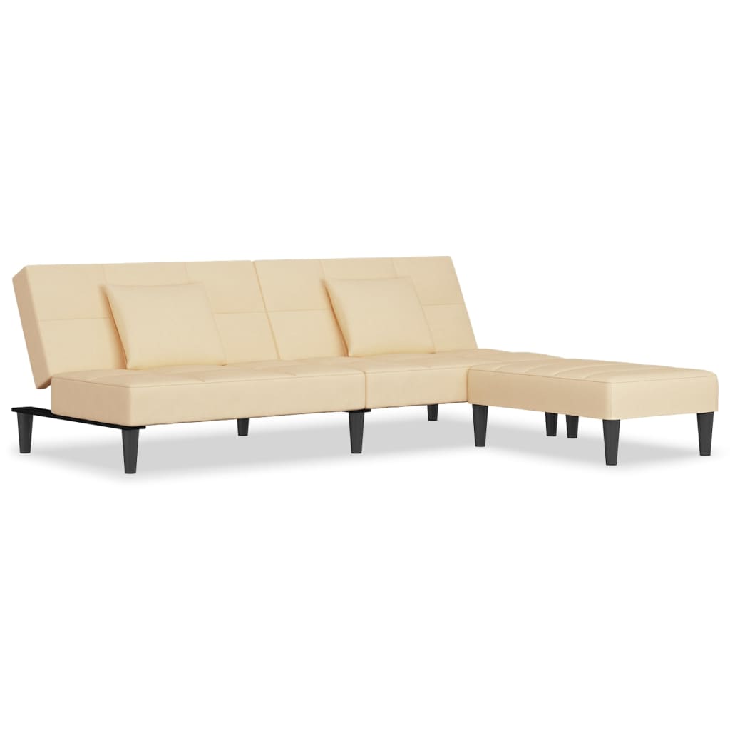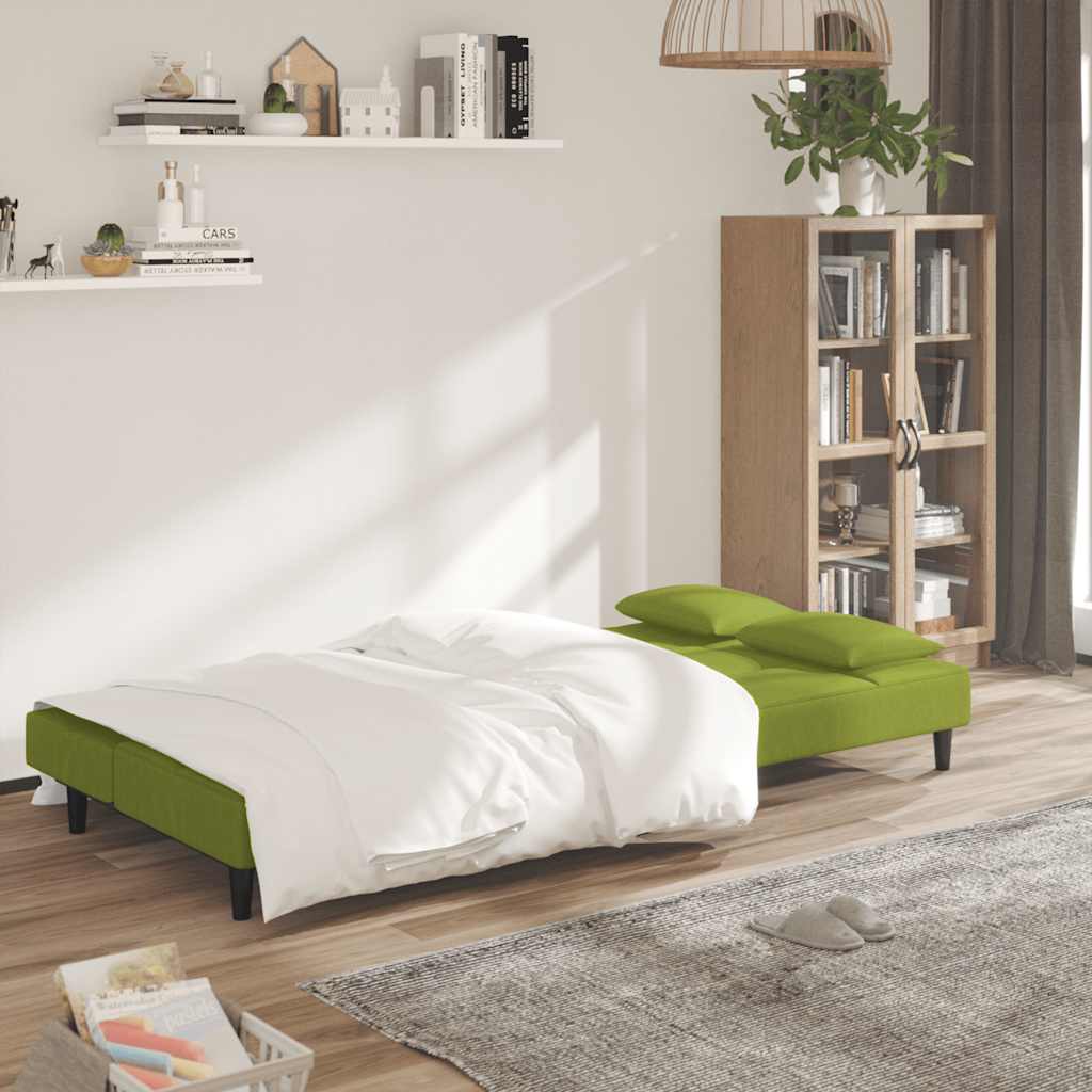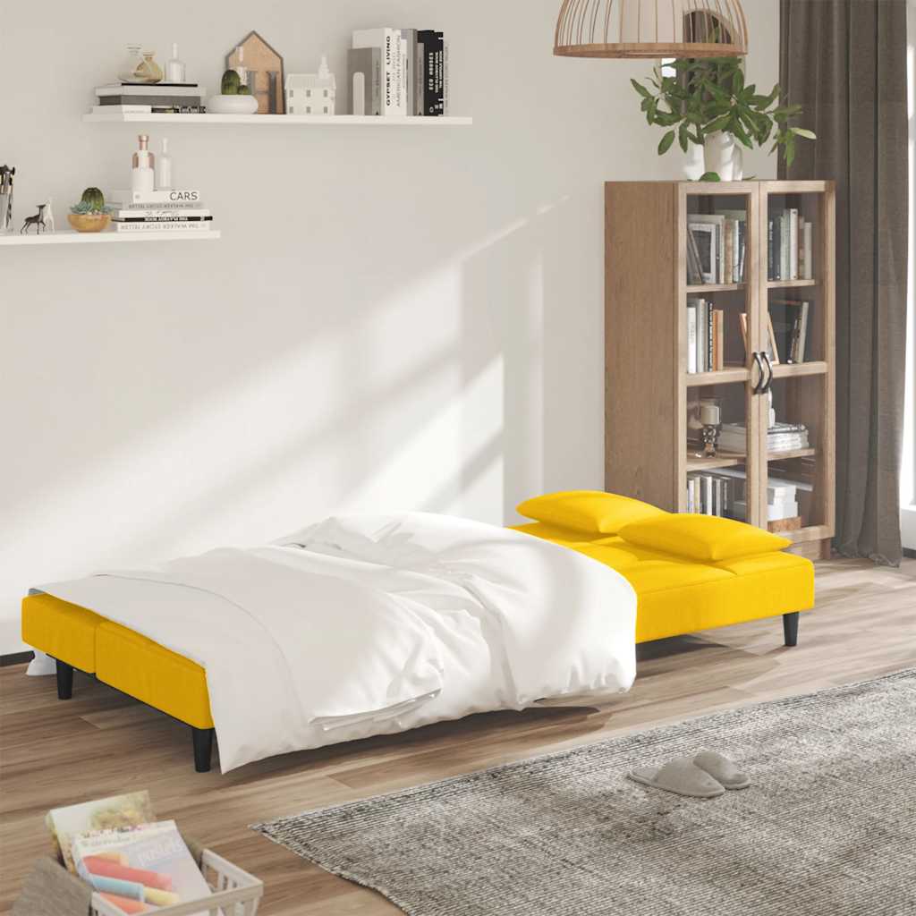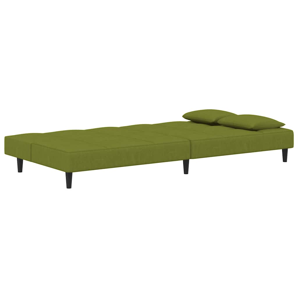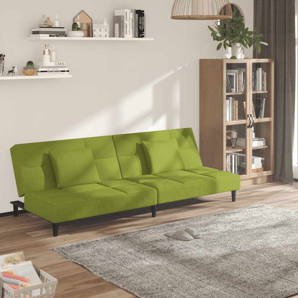 Dieses Schlafsofa ist die perfekte Lösung für die Unterbringung von Übernachtungsgästen und bietet tagsüber eine bequeme Sitzgelegenheit. Erstklassiges Material: Samt besitzt eine zarte Textur und fühlt sich weich und angenehm an.Robust und stabil: Der Holzrahmen sorgt für Robustheit und Stabilität.Vielseitig einsetzbar: Das Schlafsofa lässt sich ganz schnell und einfach von einem Sofa in ein Bett und wieder zurück verwandeln. Dabei können Sie die zwei separaten Kissen teilweise oder vollständig hinunterbringen, um den idealen Platz für ein Nickerchen oder ein Doppelbett zu schaffen.Zusätzlicher Komfort: Der Hocker bietet Platz zum Ausruhen der Füße am Ende des Tages, kann aber auch als zusätzliche Sitzgelegenheit im Wohnzimmer oder Eingangsbereich dienen.Zusätzliche Kissen: Zu Ihrer Bequemlichkeit sind auch zusätzliche Kissen im Lieferumfang enthalten.