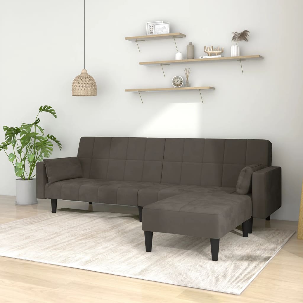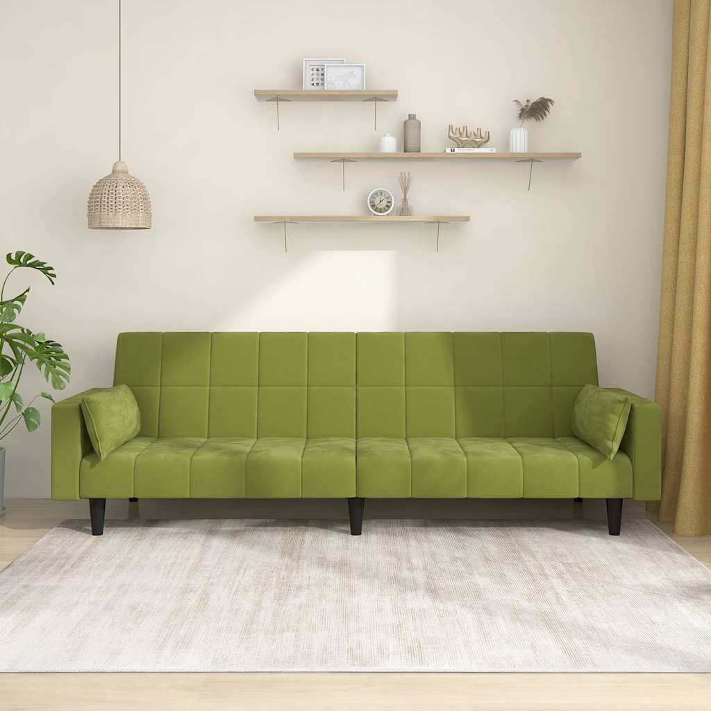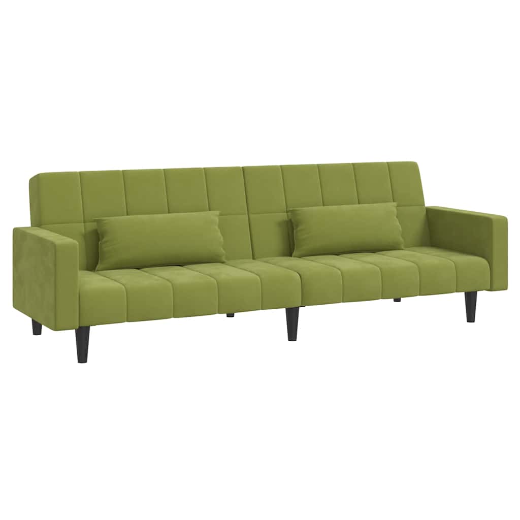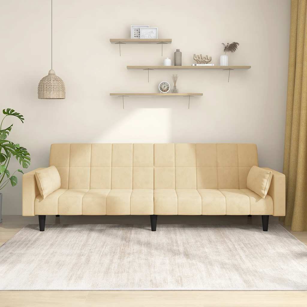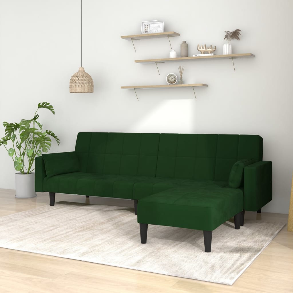 Dieses Schlafsofa ist die perfekte Lösung für die Unterbringung von Übernachtungsgästen und bietet tagsüber eine bequeme Sitzgelegenheit. Erstklassiges Material: Samt besitzt eine zarte Textur und fühlt sich weich und angenehm an.Robust und stabil: Der Holzrahmen sorgt für Robustheit und Stabilität.Vielseitig einsetzbar: Das Schlafsofa lässt sich ganz schnell und einfach von einem Sofa in ein Bett und wieder zurück verwandeln. Dabei können Sie die zwei separaten Kissen teilweise oder vollständig hinunterbringen, um den idealen Platz für ein Nickerchen oder ein Doppelbett zu schaffen.Zusätzlicher Komfort: Der Hocker bietet Platz zum Ausruhen der Füße am Ende des Tages, kann aber auch als zusätzliche Sitzgelegenheit im Wohnzimmer oder Eingangsbereich dienen.Zusätzliche Kissen: Zu Ihrer Bequemlichkeit sind auch zusätzliche Kissen im Lieferumfang enthalten.