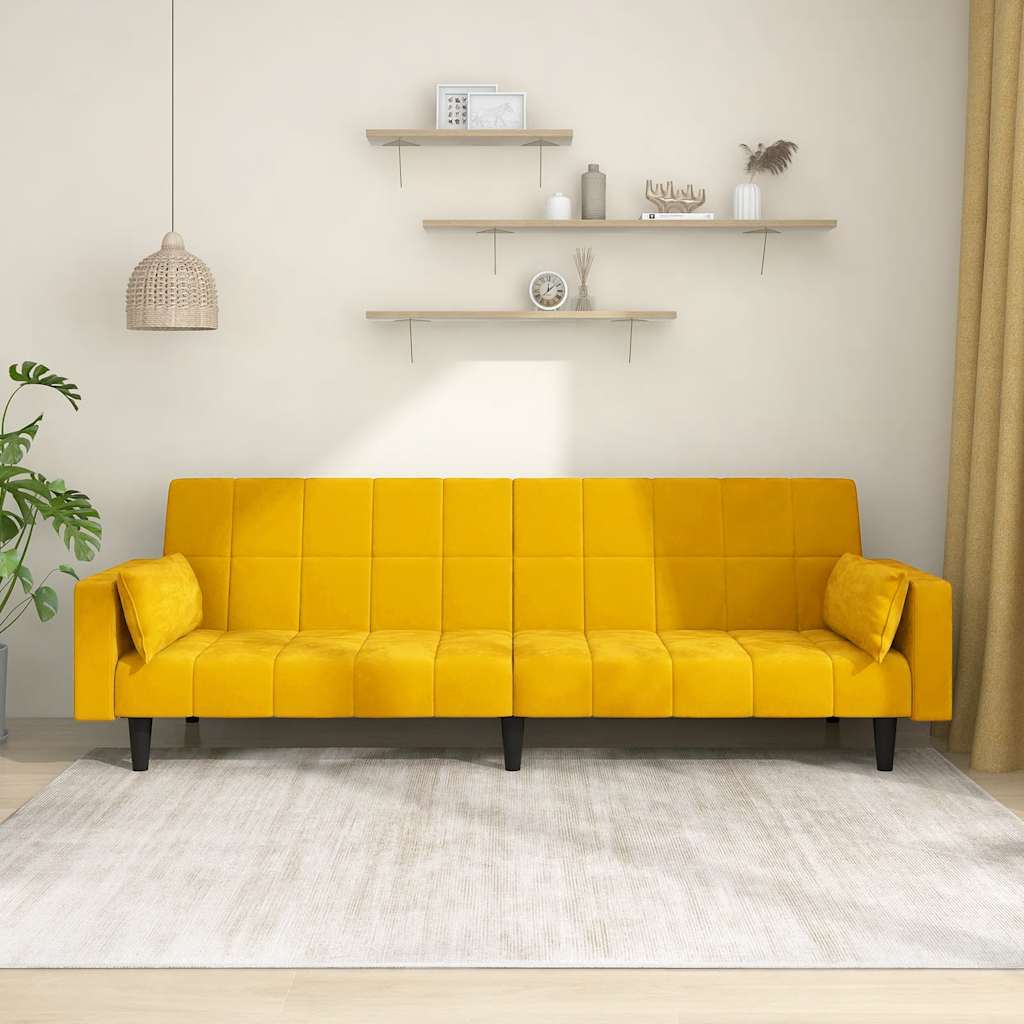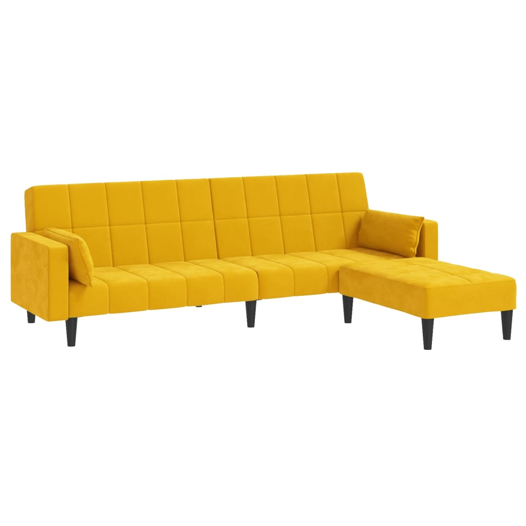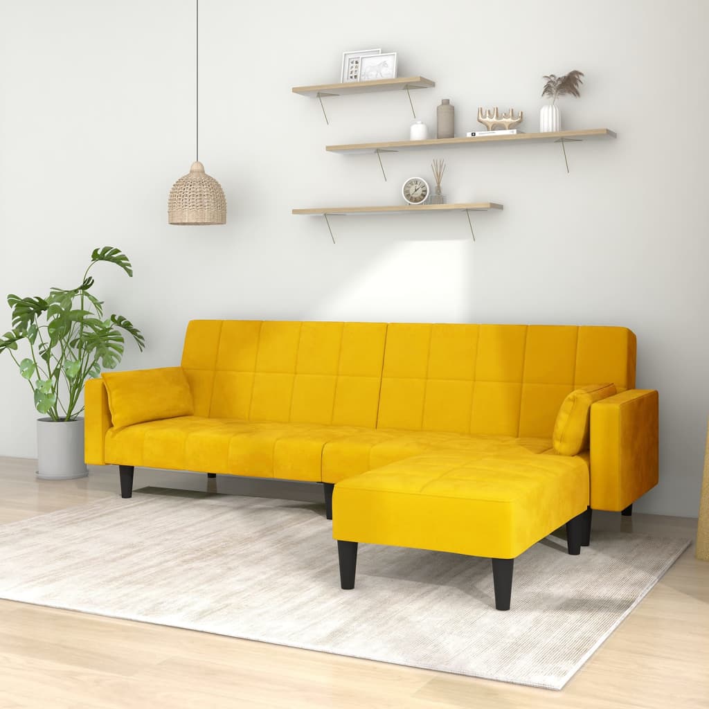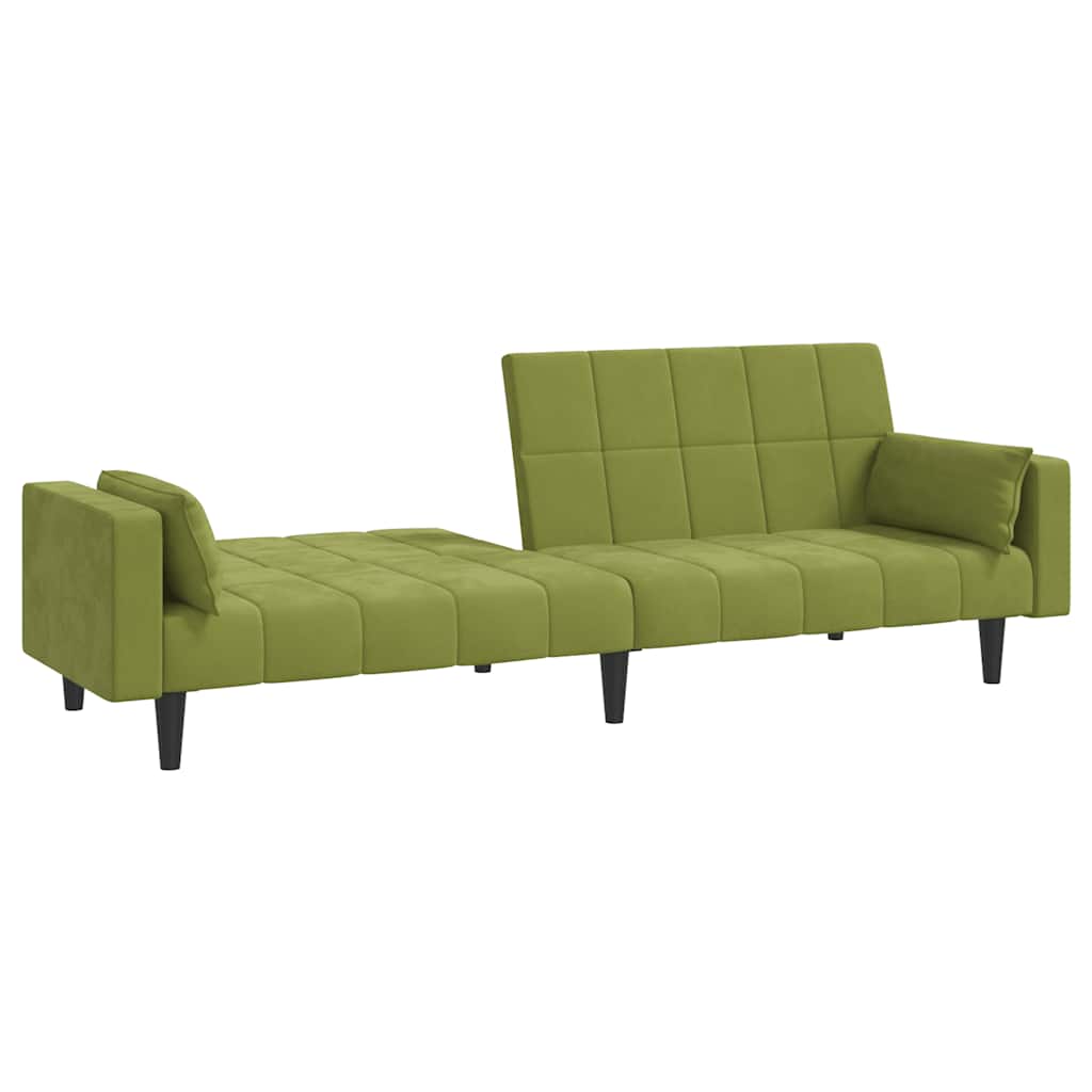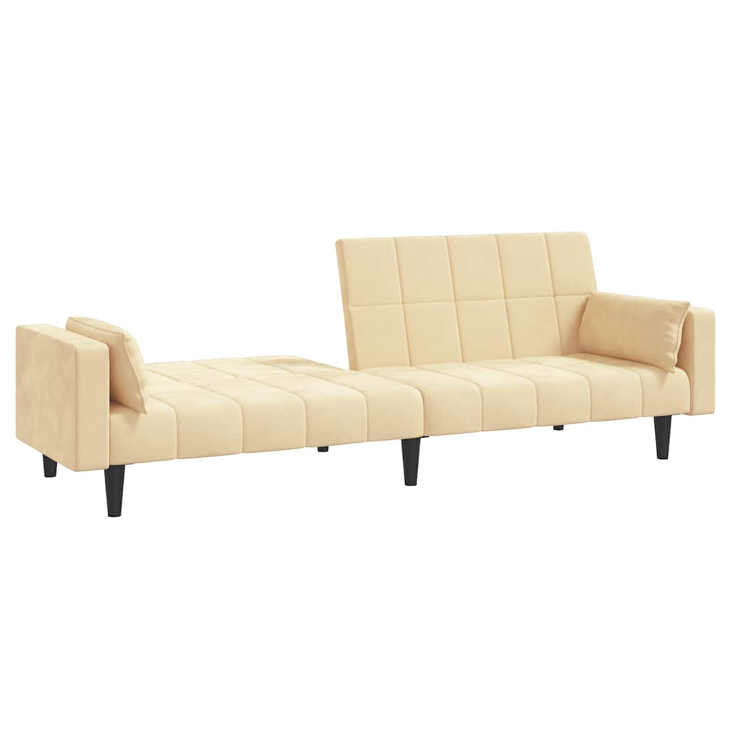 Dieses Schlafsofa ist die perfekte Lösung für die Unterbringung von Übernachtungsgästen und bietet tagsüber eine bequeme Sitzgelegenheit. Erstklassiges Material: Samt besitzt eine zarte Textur und fühlt sich weich und angenehm an.Robust und stabil: Der Holzrahmen sorgt für Robustheit und Stabilität.Vielseitig einsetzbar: Das Schlafsofa lässt sich ganz schnell und einfach von einem Sofa in ein Bett und wieder zurück verwandeln. Dabei können Sie die zwei separaten Kissen teilweise oder vollständig hinunterbringen, um den idealen Platz für ein Nickerchen oder ein Doppelbett zu schaffen.Zusätzlicher Komfort: Der Hocker bietet Platz zum Ausruhen der Füße am Ende des Tages, kann aber auch als zusätzliche Sitzgelegenheit im Wohnzimmer oder Eingangsbereich dienen.Zusätzliche Kissen: Zu Ihrer Bequemlichkeit sind auch zusätzliche Kissen im Lieferumfang enthalten.
