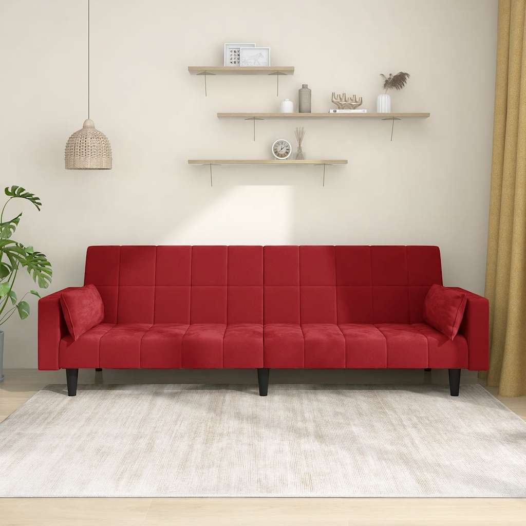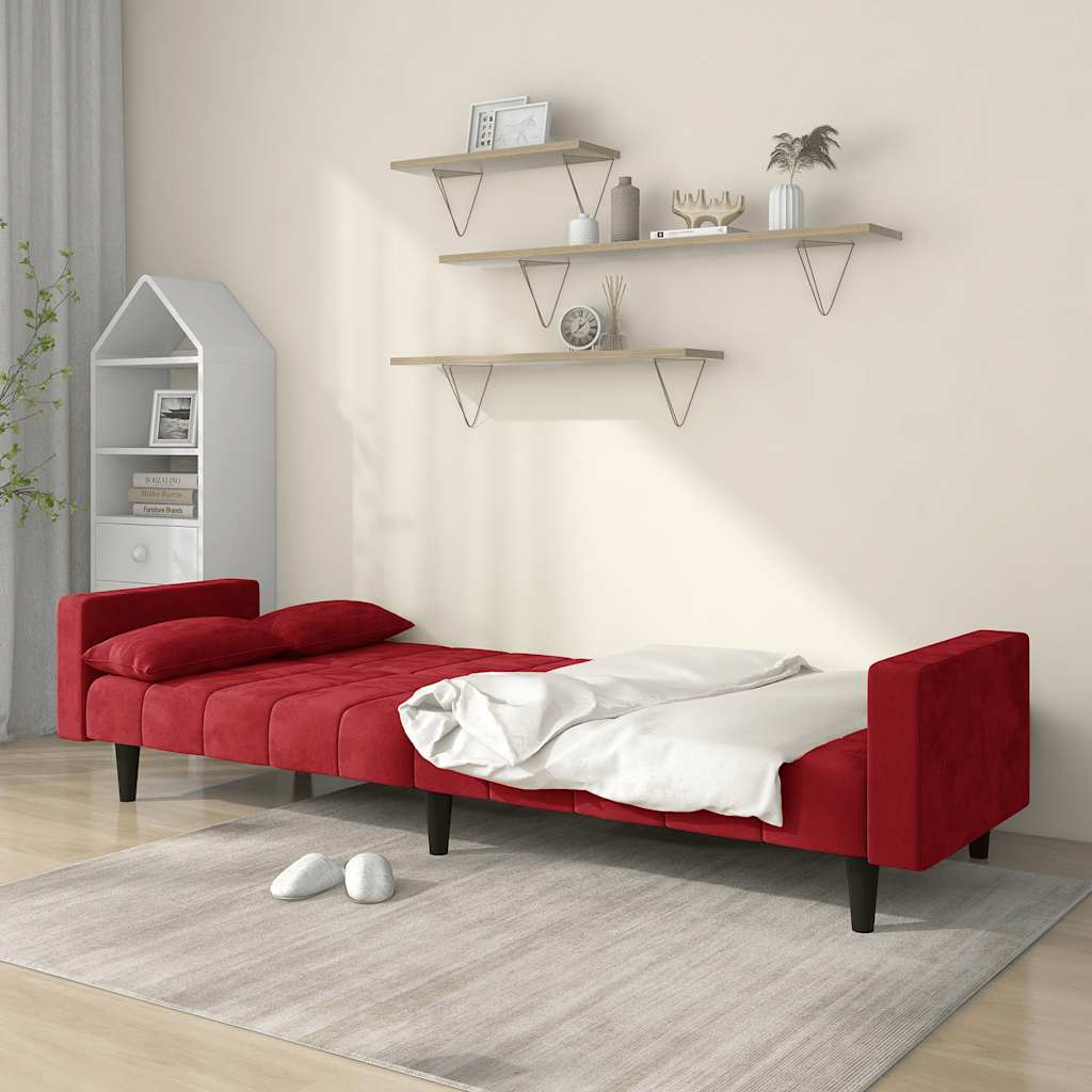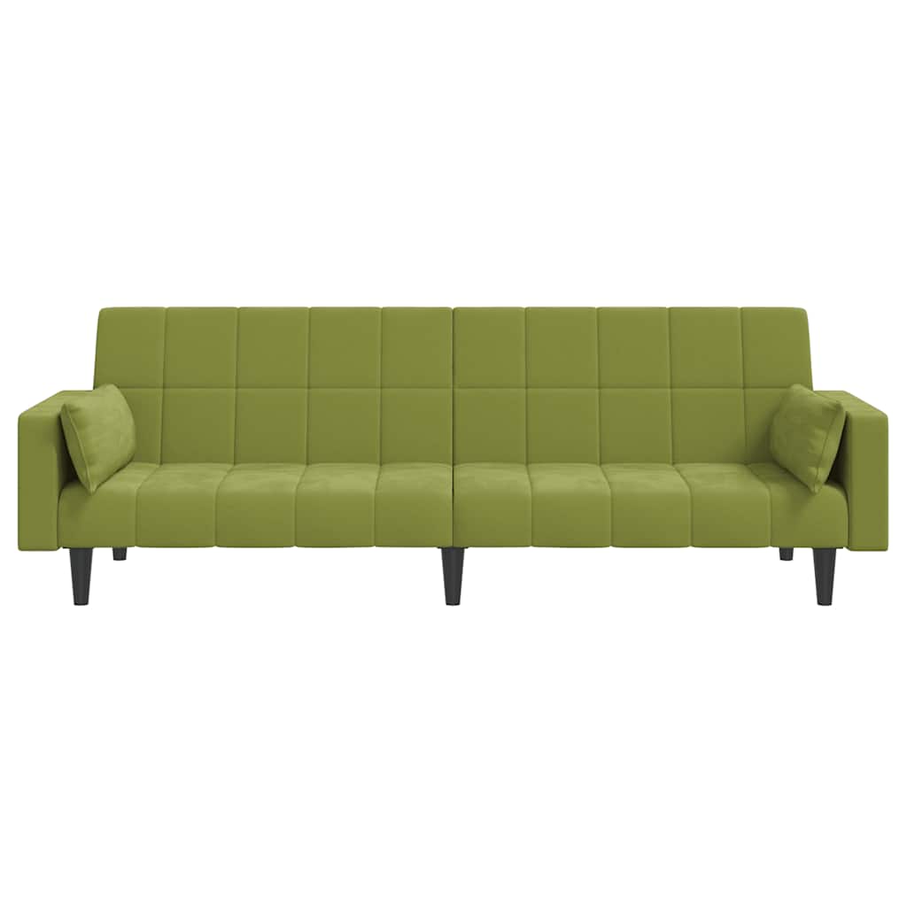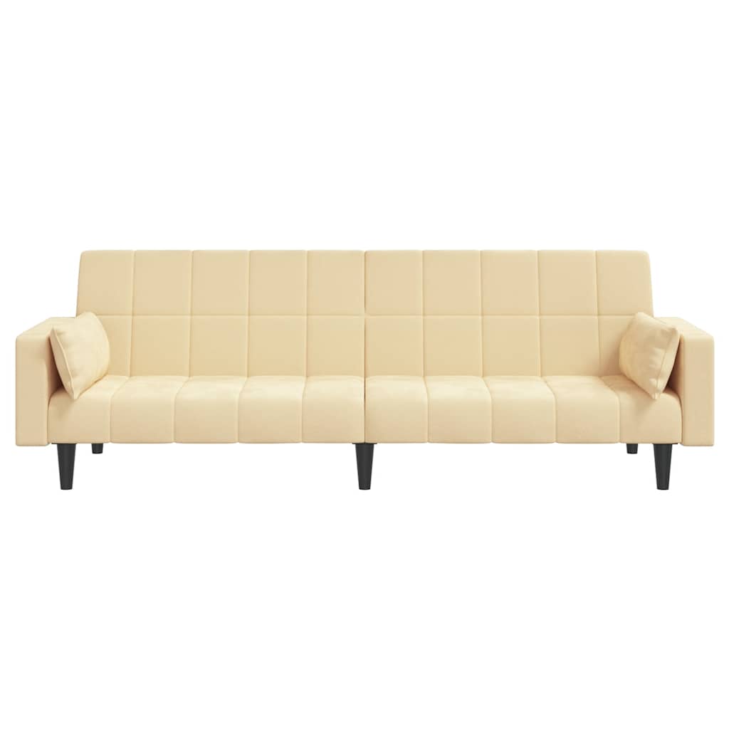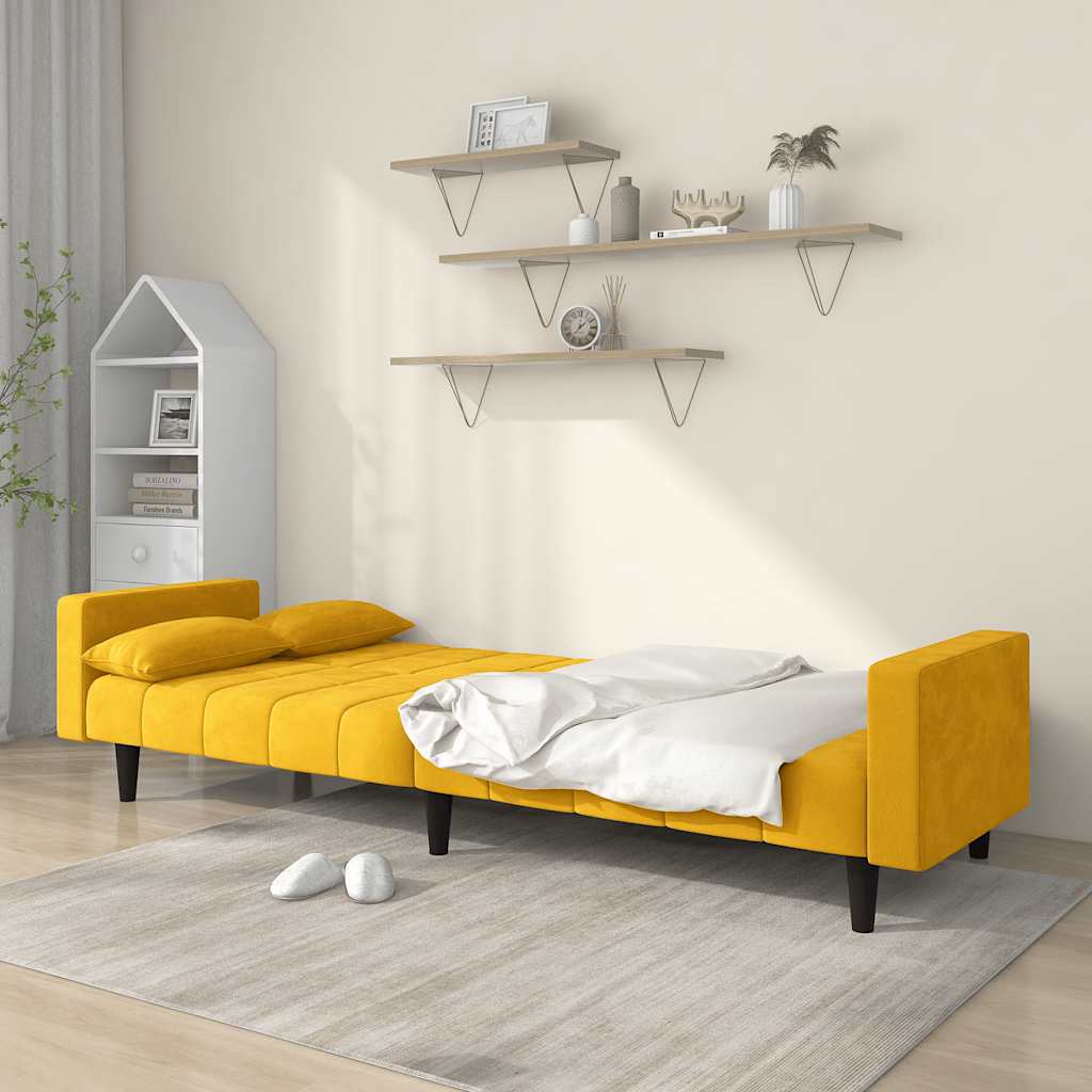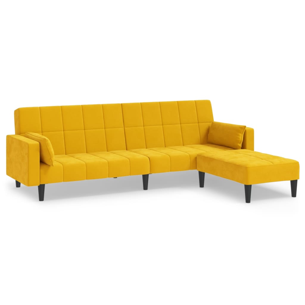 Dieses Schlafsofa ist die perfekte Lösung für die Unterbringung von Übernachtungsgästen und bietet tagsüber eine bequeme Sitzgelegenheit. Erstklassiges Material: Samt besitzt eine zarte Textur und fühlt sich weich und angenehm an.Robust und stabil: Der Holzrahmen sorgt für Robustheit und Stabilität.Vielseitig einsetzbar: Das Schlafsofa lässt sich ganz schnell und einfach von einem Sofa in ein Bett und wieder zurück verwandeln. Dabei können Sie die zwei separaten Kissen teilweise oder vollständig hinunterbringen, um den idealen Platz für ein Nickerchen oder ein Doppelbett zu schaffen.Zusätzlicher Komfort: Der Hocker bietet Platz zum Ausruhen der Füße am Ende des Tages, kann aber auch als zusätzliche Sitzgelegenheit im Wohnzimmer oder Eingangsbereich dienen.Zusätzliche Kissen: Zu Ihrer Bequemlichkeit sind auch zusätzliche Kissen im Lieferumfang enthalten.