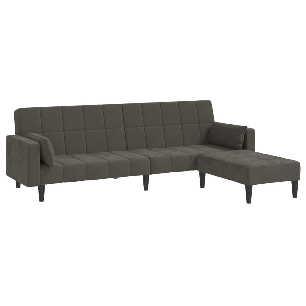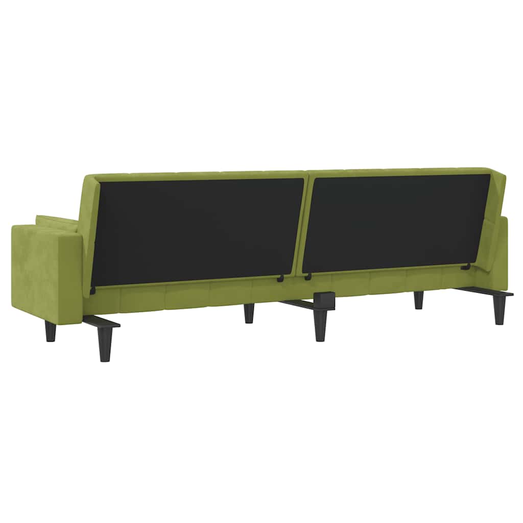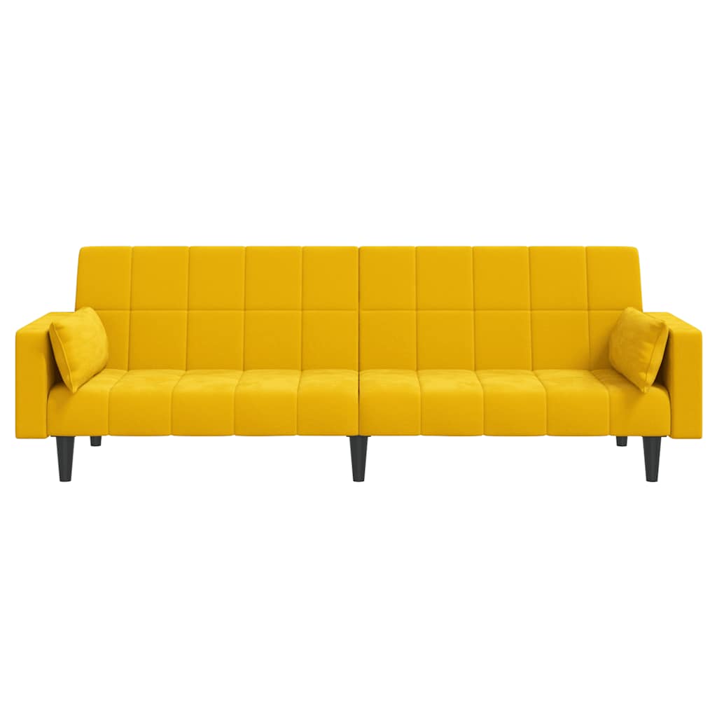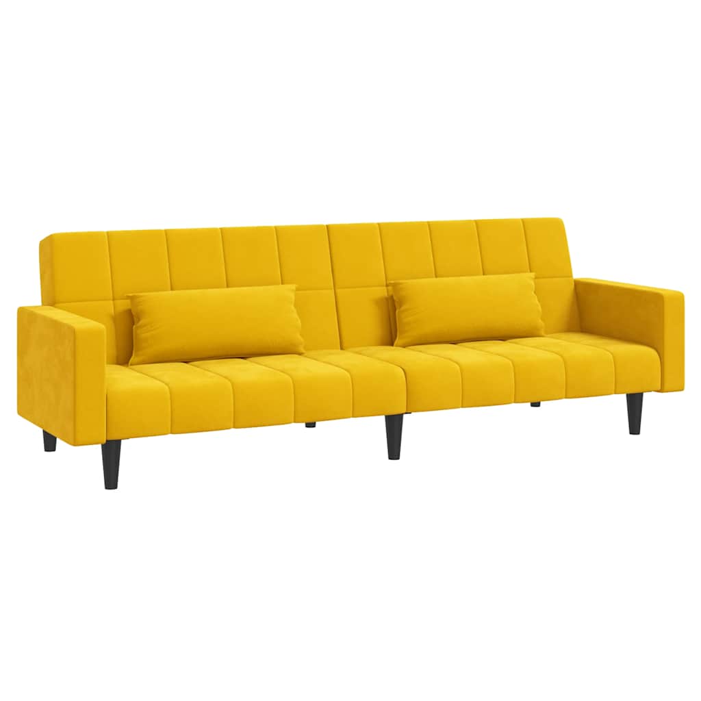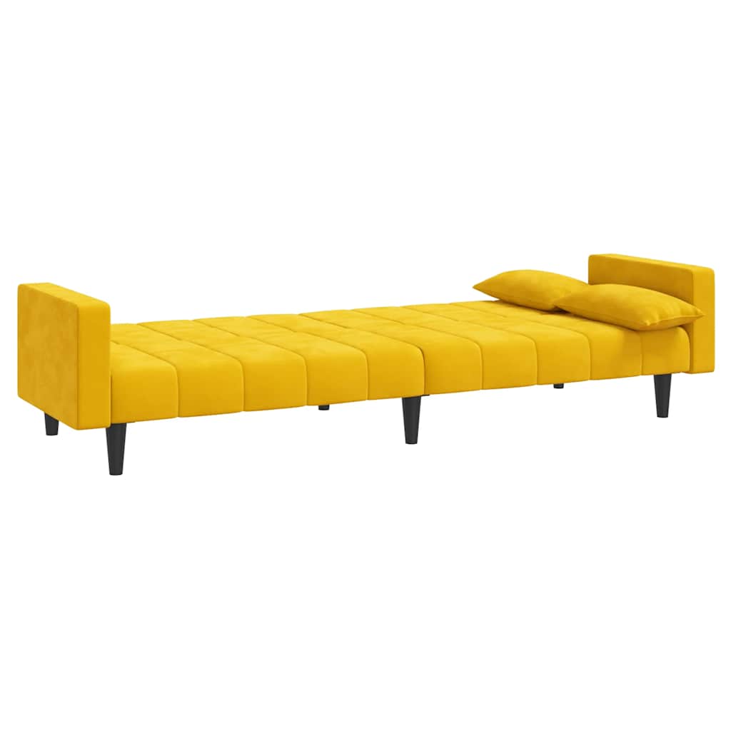 Dieses Schlafsofa ist die perfekte Lösung für die Unterbringung von Übernachtungsgästen und bietet tagsüber eine bequeme Sitzgelegenheit. Erstklassiges Material: Samt besitzt eine zarte Textur und fühlt sich weich und angenehm an.Robust und stabil: Der Holzrahmen sorgt für Robustheit und Stabilität.Vielseitig einsetzbar: Das Schlafsofa lässt sich ganz schnell und einfach von einem Sofa in ein Bett und wieder zurück verwandeln. Dabei können Sie die zwei separaten Kissen teilweise oder vollständig hinunterbringen, um den idealen Platz für ein Nickerchen oder ein Doppelbett zu schaffen.Zusätzlicher Komfort: Der Hocker bietet Platz zum Ausruhen der Füße am Ende des Tages, kann aber auch als zusätzliche Sitzgelegenheit im Wohnzimmer oder Eingangsbereich dienen.Zusätzliche Kissen: Zu Ihrer Bequemlichkeit sind auch zusätzliche Kissen im Lieferumfang enthalten.