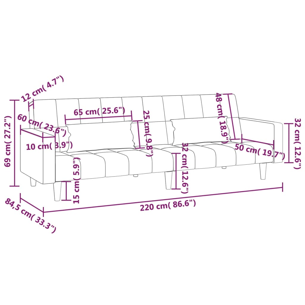 - Gesamtabmessungen des Sofas: 220 x 84,5 x 69 cm (L x B x H)