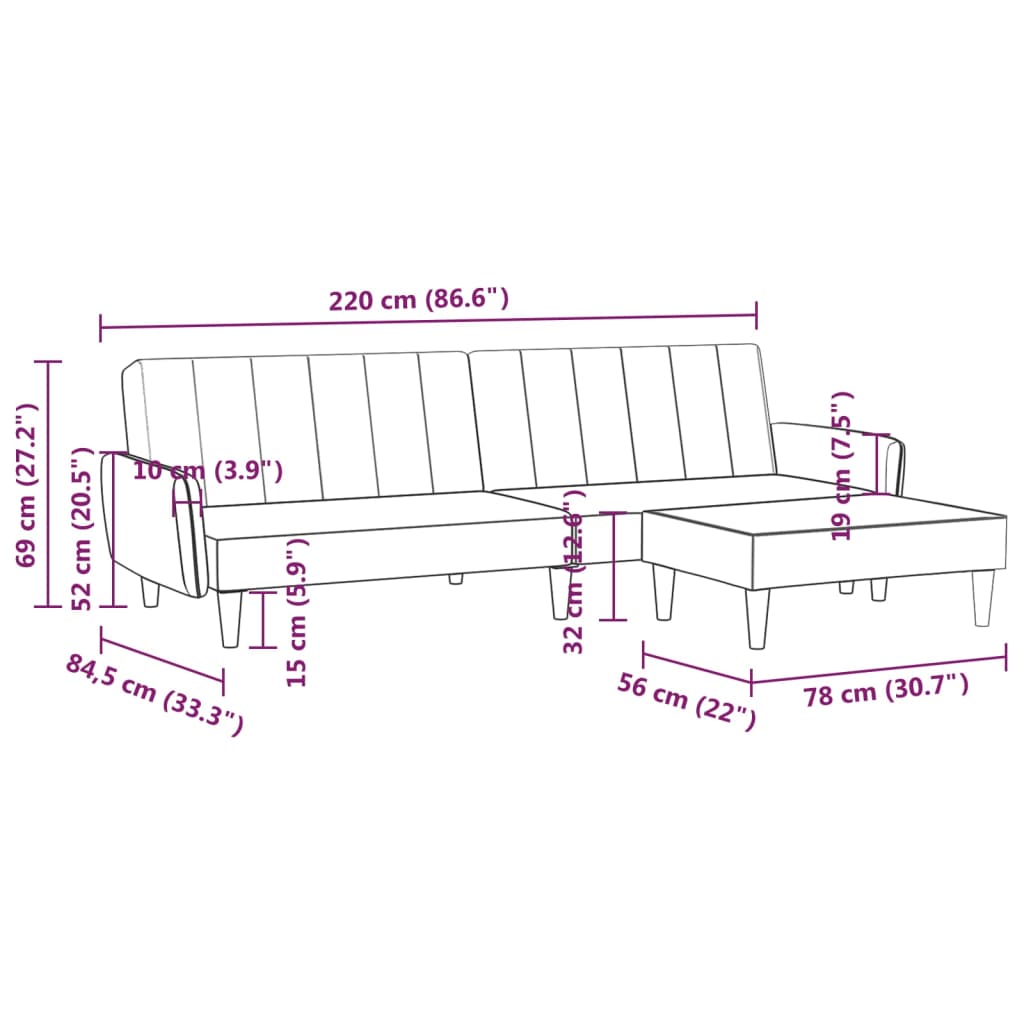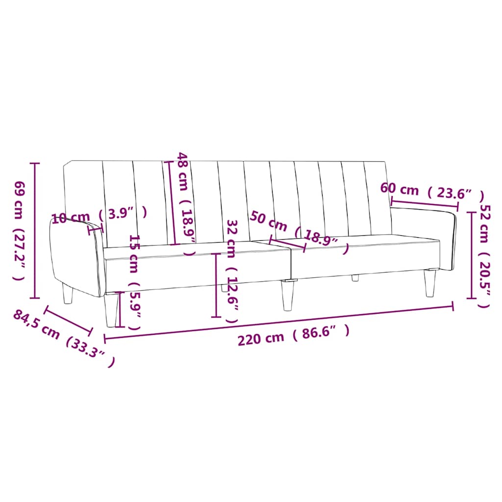 - Gesamtabmessungen des Sofas: 220 x 84,5 x 69 cm (L x B x H)