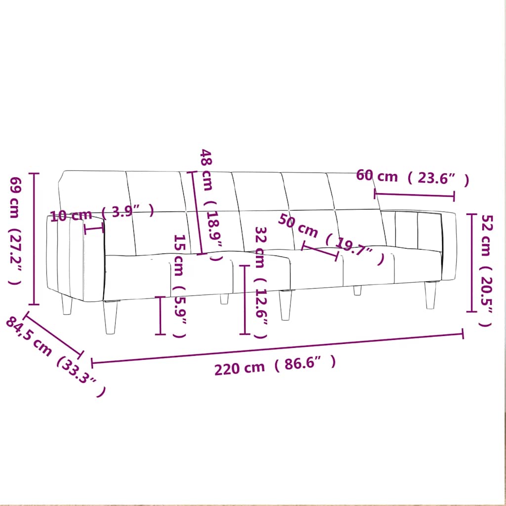 - Gesamtmaße des Sofas: 200 x 84,5 x 69 cm (L x B x H)
