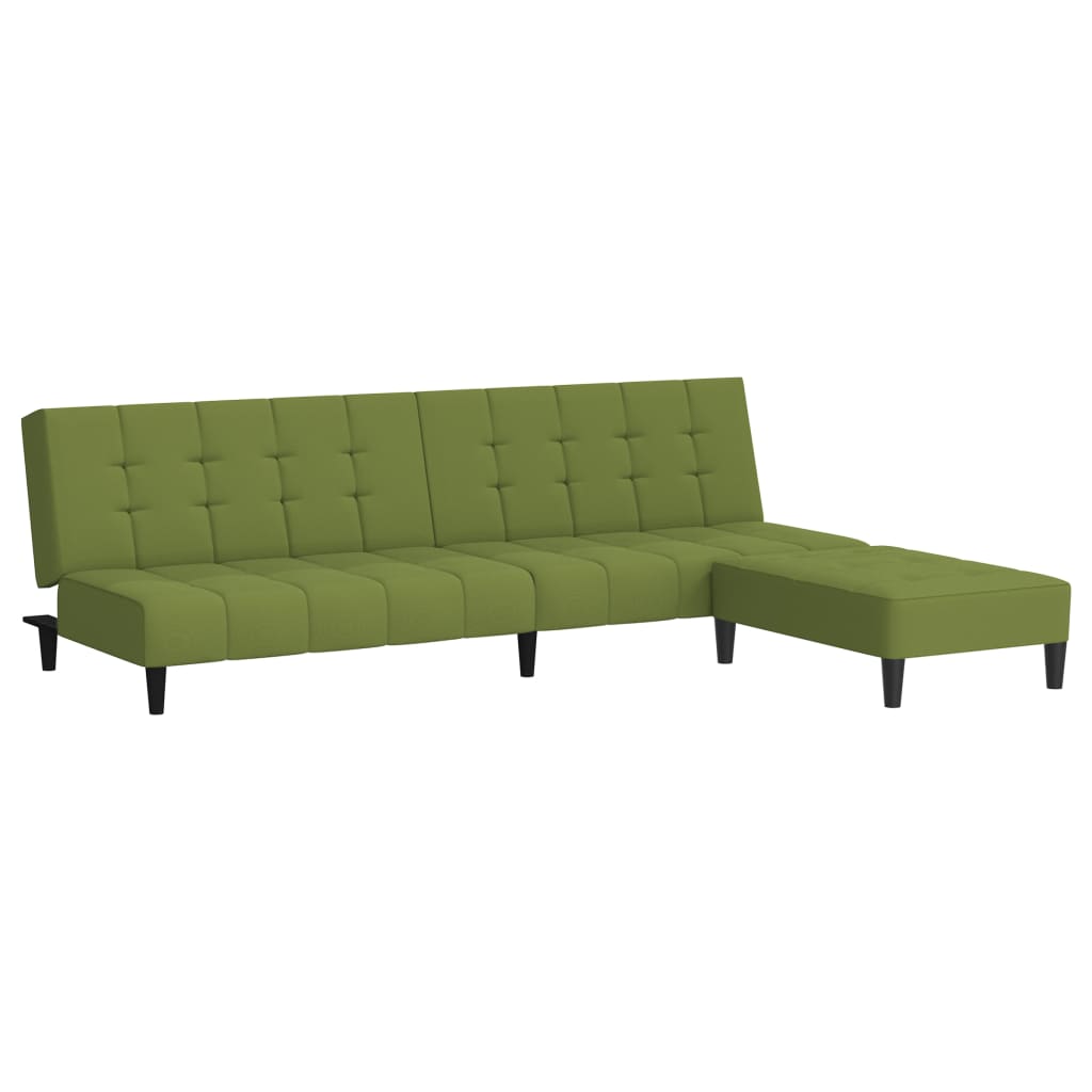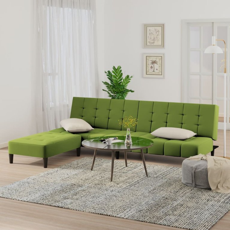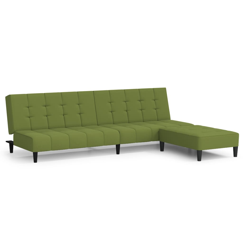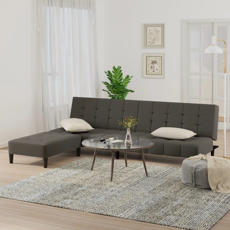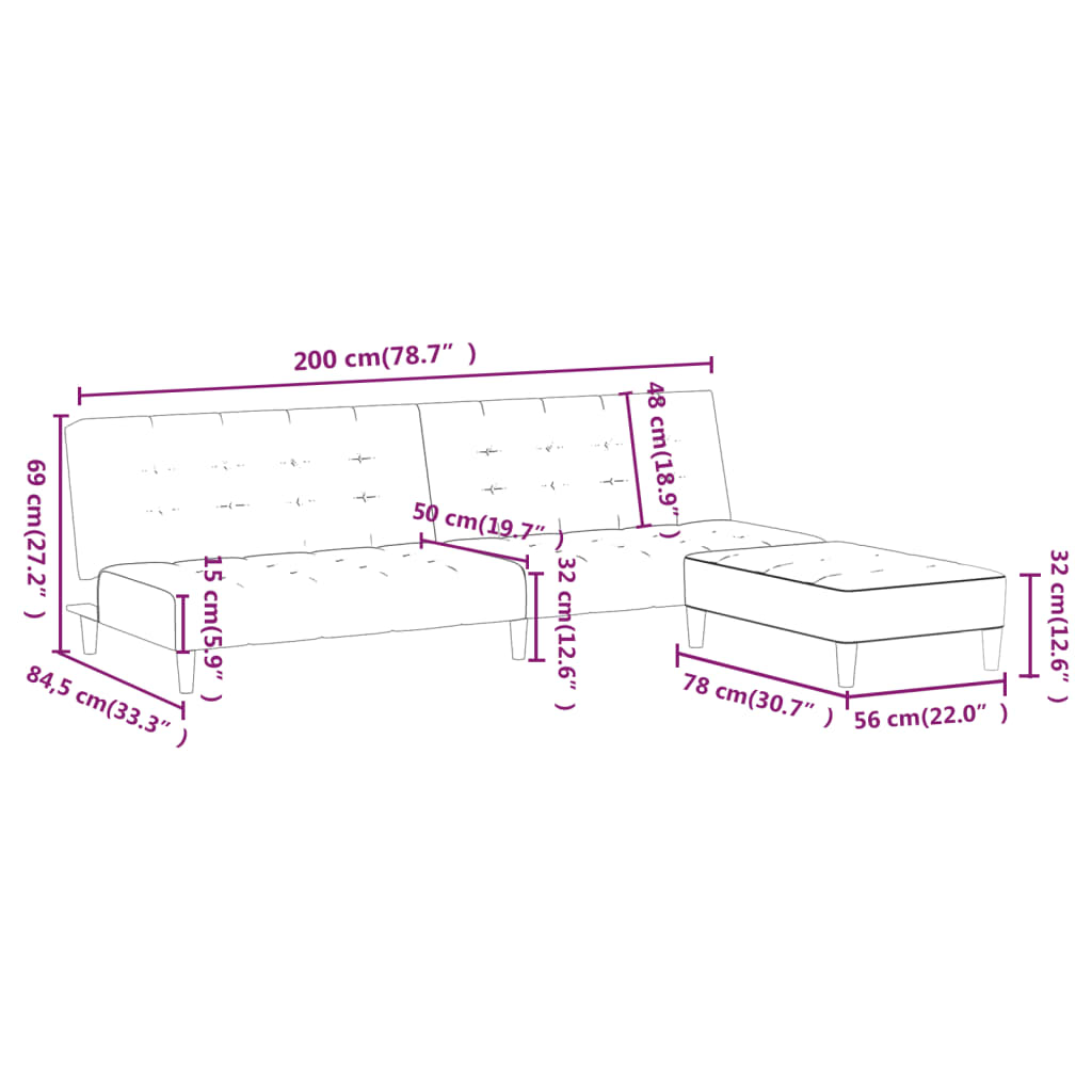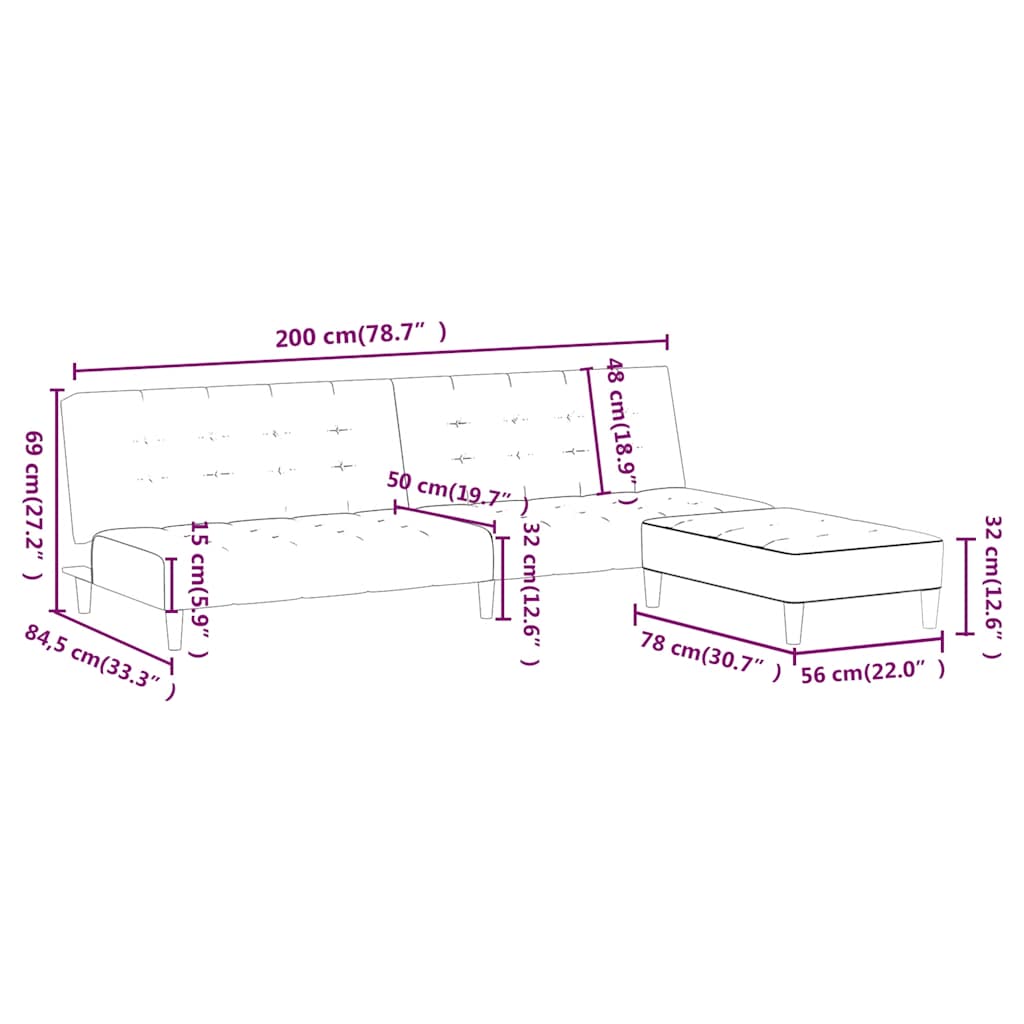 Dieses multifunktionale Schlafsofa mit Hocker stellt eine perfekte Kombination aus einem Luxus-Sofa und einem komfortablen Gästebett dar, was es zu einer praktischen und auffälligen Ergänzung zu jedem Interieur macht! Der Rahmen aus Sperrholz trägt zur Robustheit des Sofas bei, während die dicke Polsterung aus Schaumstoff für zusätzlichen Komfort sorgt. Das Gästebett lässt sich ganz schnell und einfach von einem Sofa in ein Bett und wieder zurück verwandeln. Dabei können Sie die zwei separaten Kissen teilweise oder vollständig hinunterbringen, um den idealen Platz für ein Nickerchen oder ein Doppelbett zu schaffen. Darüber hinaus bietet der Hocker einen idealen Platz zum Ausruhen der Füße am Ende des Tages oder eine zusätzliche Sitzgelegenheit in Ihrem Wohnzimmer oder Flur. Mit seinem modernen Design passt dieses Schlafsofa mit Hocker zu jeder Inneneinrichtung.