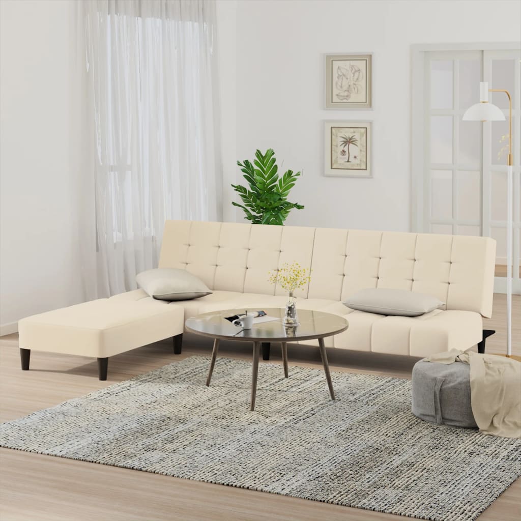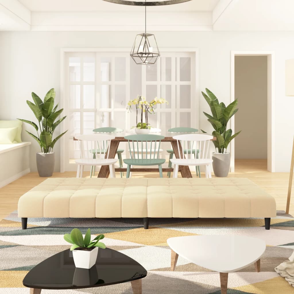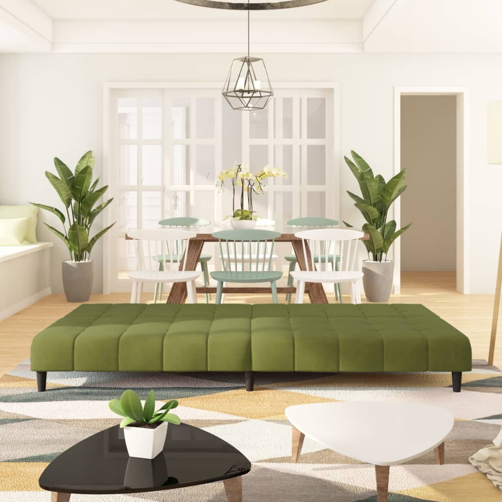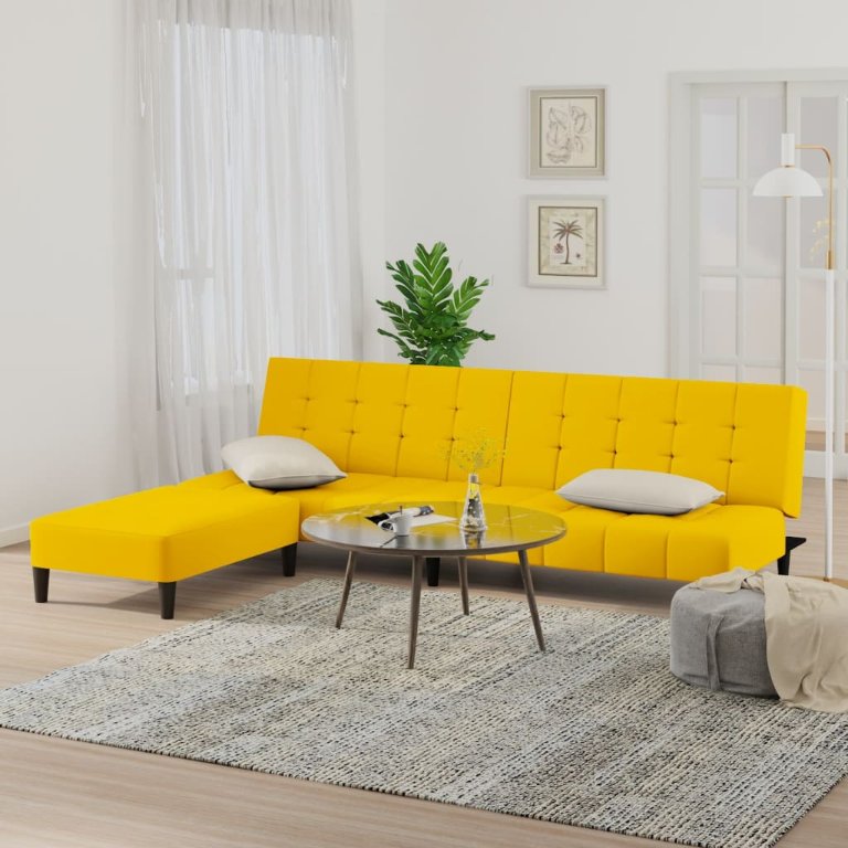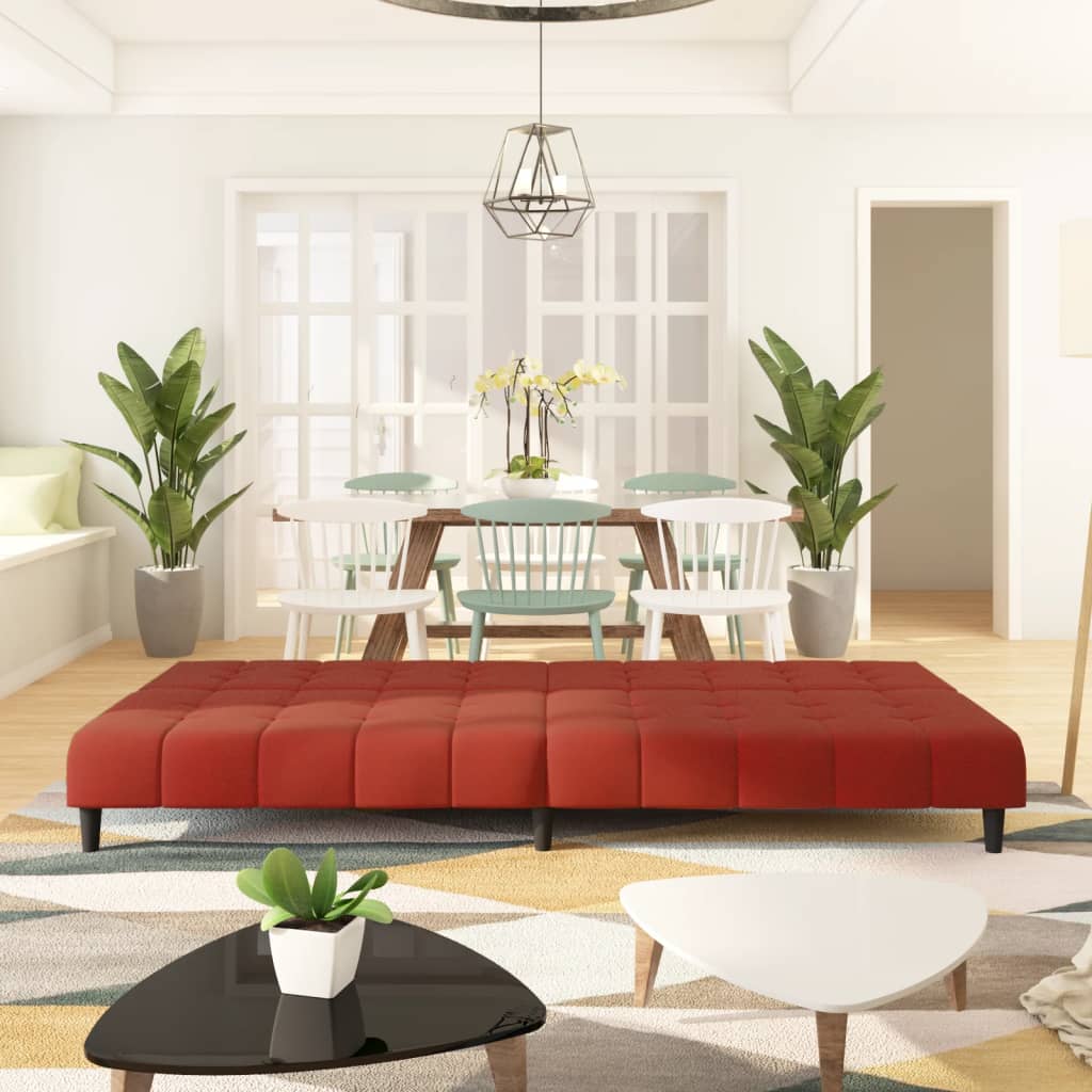 Dieses multifunktionale Schlafsofa mit Hocker stellt eine perfekte Kombination aus einem Luxus-Sofa und einem komfortablen Gästebett dar, was es zu einer praktischen und auffälligen Ergänzung zu jedem Interieur macht! Der Rahmen aus Sperrholz trägt zur Robustheit des Sofas bei, während die dicke Polsterung aus Schaumstoff für zusätzlichen Komfort sorgt. Das Gästebett lässt sich ganz schnell und einfach von einem Sofa in ein Bett und wieder zurück verwandeln. Dabei können Sie die zwei separaten Kissen teilweise oder vollständig hinunterbringen, um den idealen Platz für ein Nickerchen oder ein Doppelbett zu schaffen. Darüber hinaus bietet der Hocker einen idealen Platz zum Ausruhen der Füße am Ende des Tages oder eine zusätzliche Sitzgelegenheit in Ihrem Wohnzimmer oder Flur. Mit seinem modernen Design passt dieses Schlafsofa mit Hocker zu jeder Inneneinrichtung.