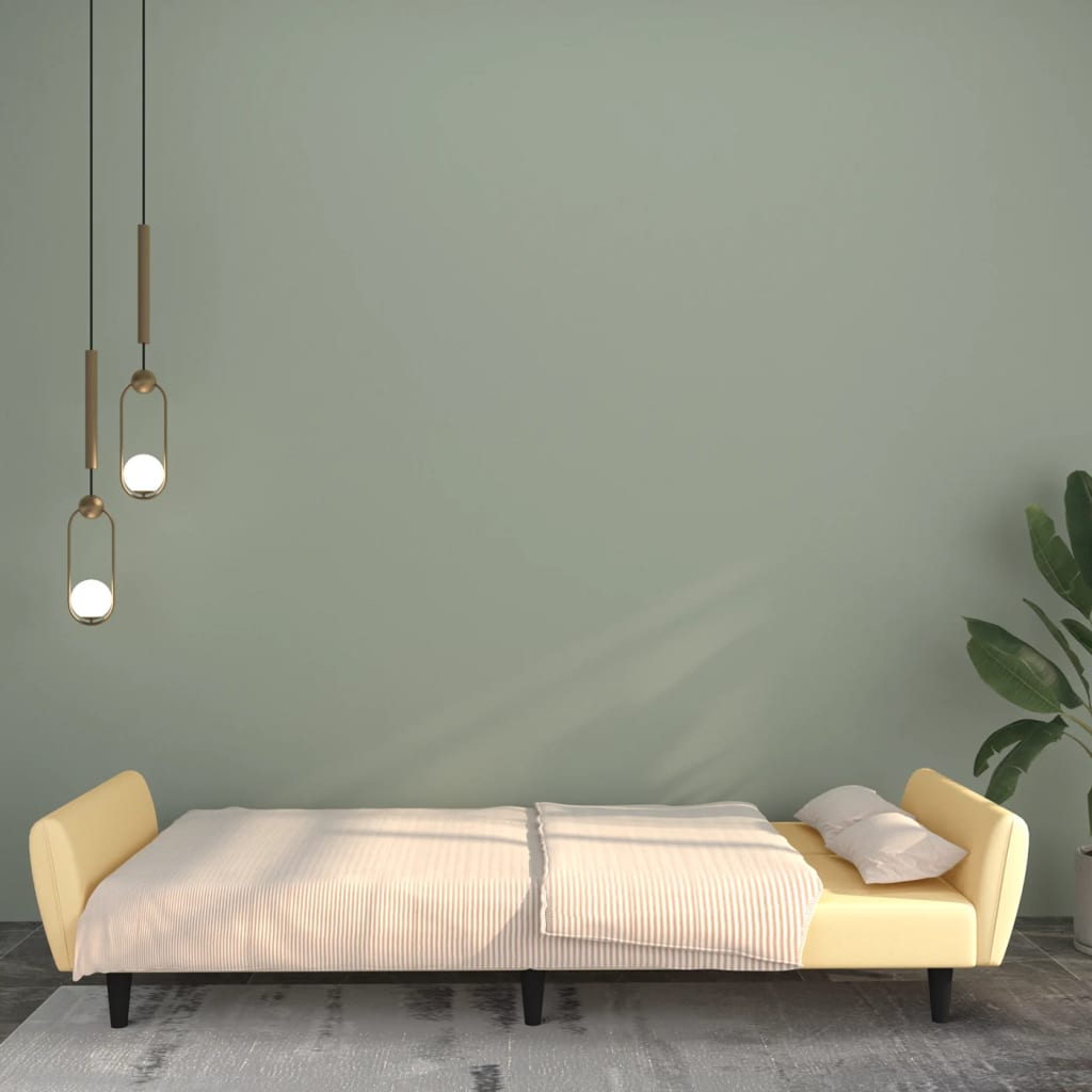 Dieses Sofa lässt sich einfach in ein Bett umwandeln. So können Sie je nach Ihren Vorlieben zwischen Sitz-, Lounge- oder Schlafposition auswählen. Es ist das ideale Möbelstück, wenn Sie zusätzlichen Schlafplatz für Freunde oder Übernachtungsgäste benötigen. Weiches und angenehmes Material: Samt ist ein weicher, luxuriöser Stoff, der sich durch einen dichten Flor aus gleichmäßig geschnittenen, weichen Fasern kennzeichnet. Samtstoff fühlt sich besonders weich und angenehm an.Verstellbare Rückenlehne: Sie können die zwei separaten Rückenlehnen teilweise oder ganz nach unten schieben, um den idealen Platz für ein Nickerchen oder ein Doppelbett zu schaffen.Robust und stabil: Der Holzrahmen des Schlafsofas sorgt für Robustheit und Stabilität.Hocker für mehr Komfort: Für zusätzlichen Komfort ist auch ein Hocker im Lieferumfang enthalten!