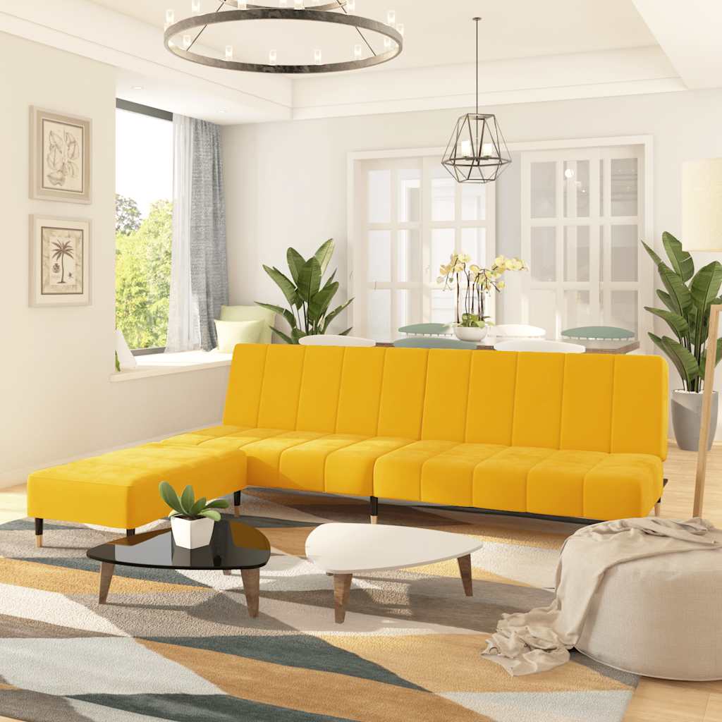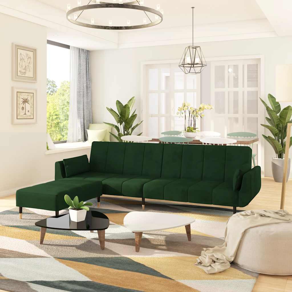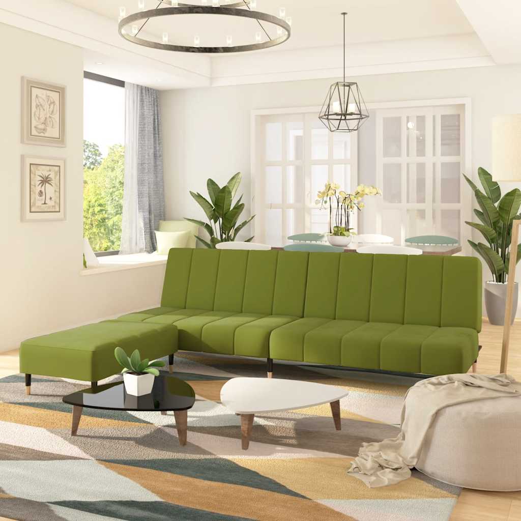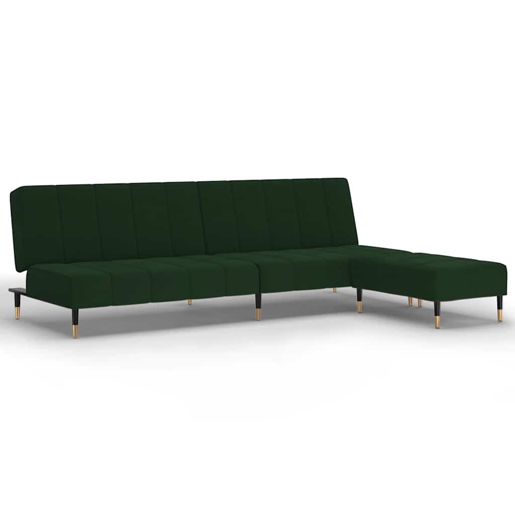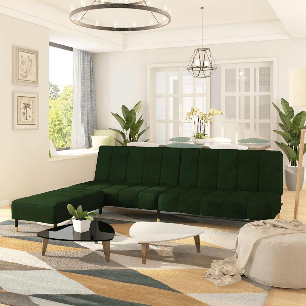 Dieses Sofa lässt sich einfach in ein Bett umwandeln. So können Sie je nach Ihren Vorlieben zwischen Sitz-, Lounge- oder Schlafposition auswählen. Es ist das ideale Möbelstück, wenn Sie zusätzlichen Schlafplatz für Freunde oder Übernachtungsgäste benötigen. Weiches und angenehmes Material: Samt ist ein weicher, luxuriöser Stoff, der sich durch einen dichten Flor aus gleichmäßig geschnittenen, weichen Fasern kennzeichnet. Samtstoff fühlt sich besonders weich und angenehm an.Verstellbare Rückenlehne: Sie können die zwei separaten Rückenlehnen teilweise oder ganz nach unten schieben, um den idealen Platz für ein Nickerchen oder ein Doppelbett zu schaffen.Robuster und stabiler Rahmen: Der Holzrahmen und die Metallbeine des Schlafsofas sorgen für Standfestigkeit und Sicherheit.Hocker für mehr Komfort: Für zusätzlichen Komfort ist auch ein Hocker im Lieferumfang enthalten!