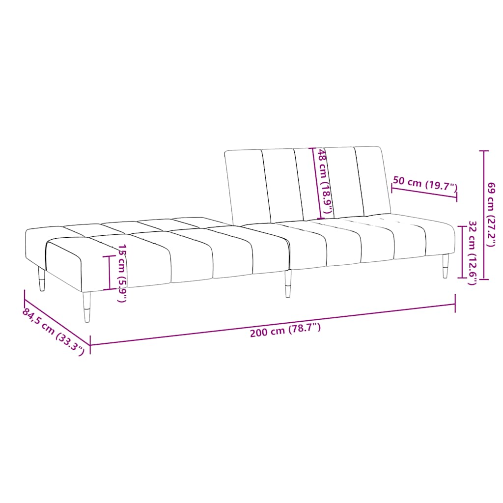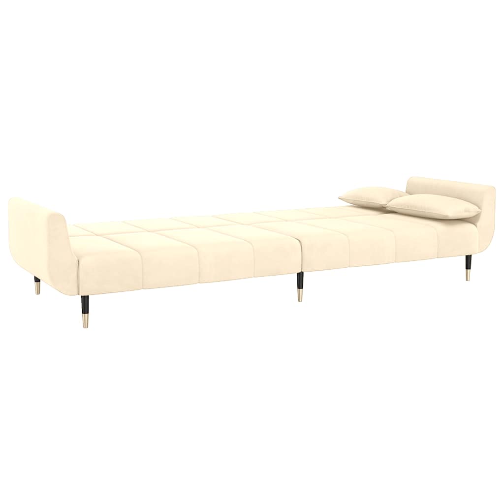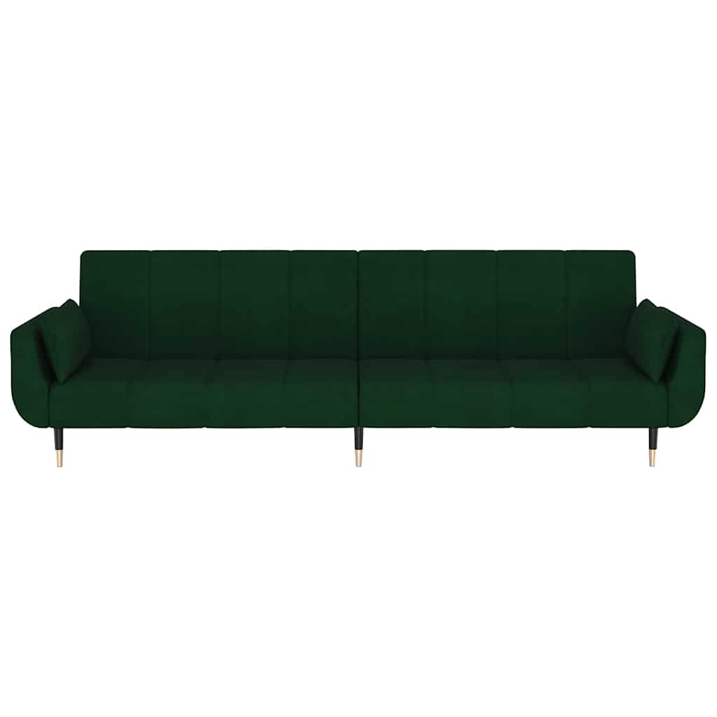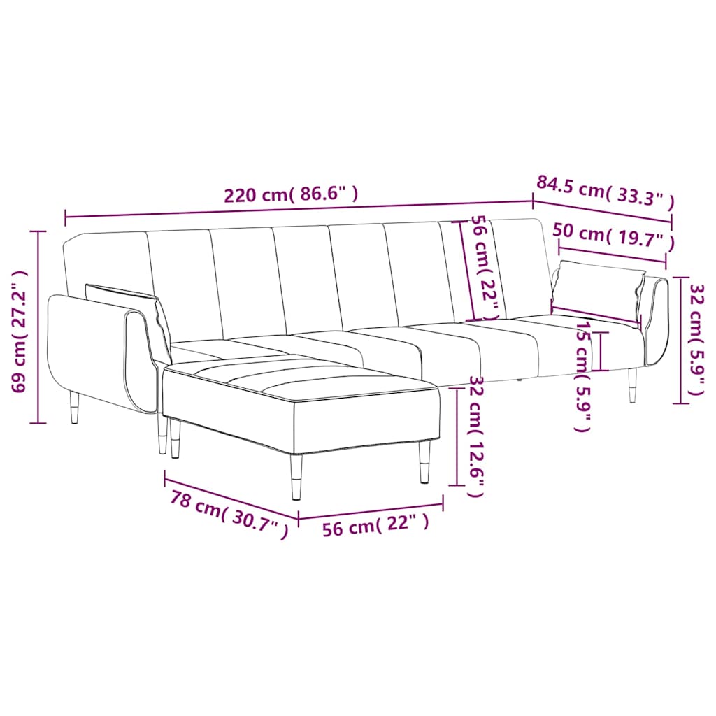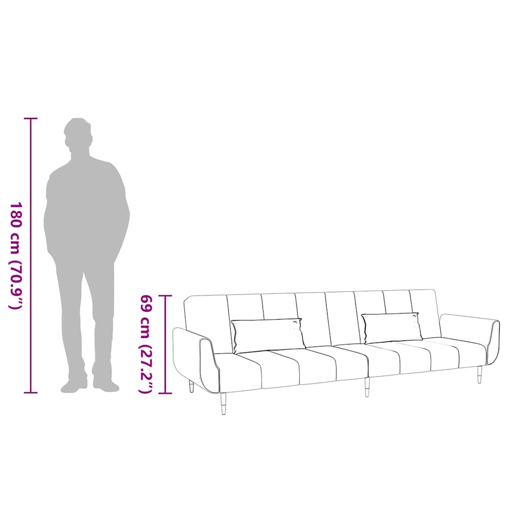 Dieses Sofa lässt sich einfach in ein Bett umwandeln. So können Sie je nach Ihren Vorlieben zwischen Sitz-, Lounge- oder Schlafposition auswählen. Es ist das ideale Möbelstück, wenn Sie zusätzlichen Schlafplatz für Freunde oder Übernachtungsgäste benötigen. Weiches und angenehmes Material: Samt ist ein weicher, luxuriöser Stoff, der sich durch einen dichten Flor aus gleichmäßig geschnittenen, weichen Fasern kennzeichnet. Samtstoff fühlt sich besonders weich und angenehm an.Verstellbare Rückenlehne: Sie können die zwei separaten Rückenlehnen teilweise oder ganz nach unten schieben, um den idealen Platz für ein Nickerchen oder ein Doppelbett zu schaffen.Robuster und stabiler Rahmen: Der Holzrahmen und die Metallbeine des Schlafsofas sorgen für Standfestigkeit und Sicherheit.Hocker für mehr Komfort: Für zusätzlichen Komfort ist auch ein Hocker im Lieferumfang enthalten!