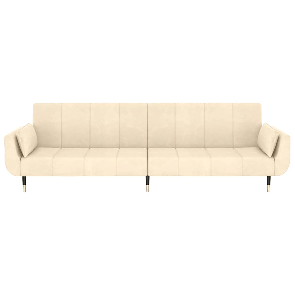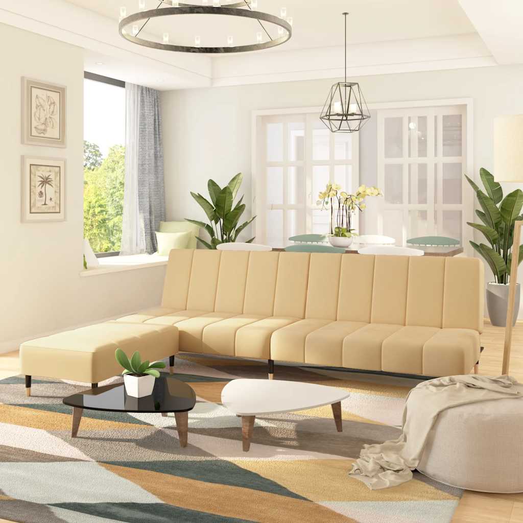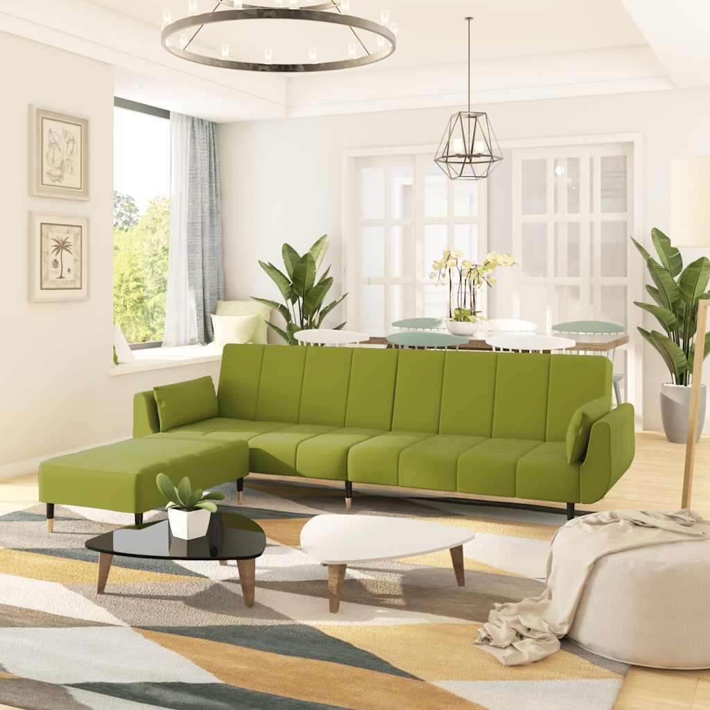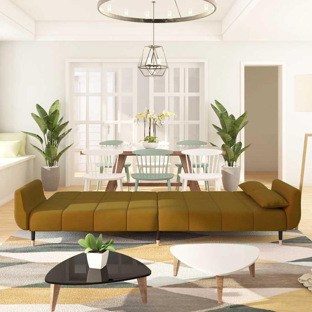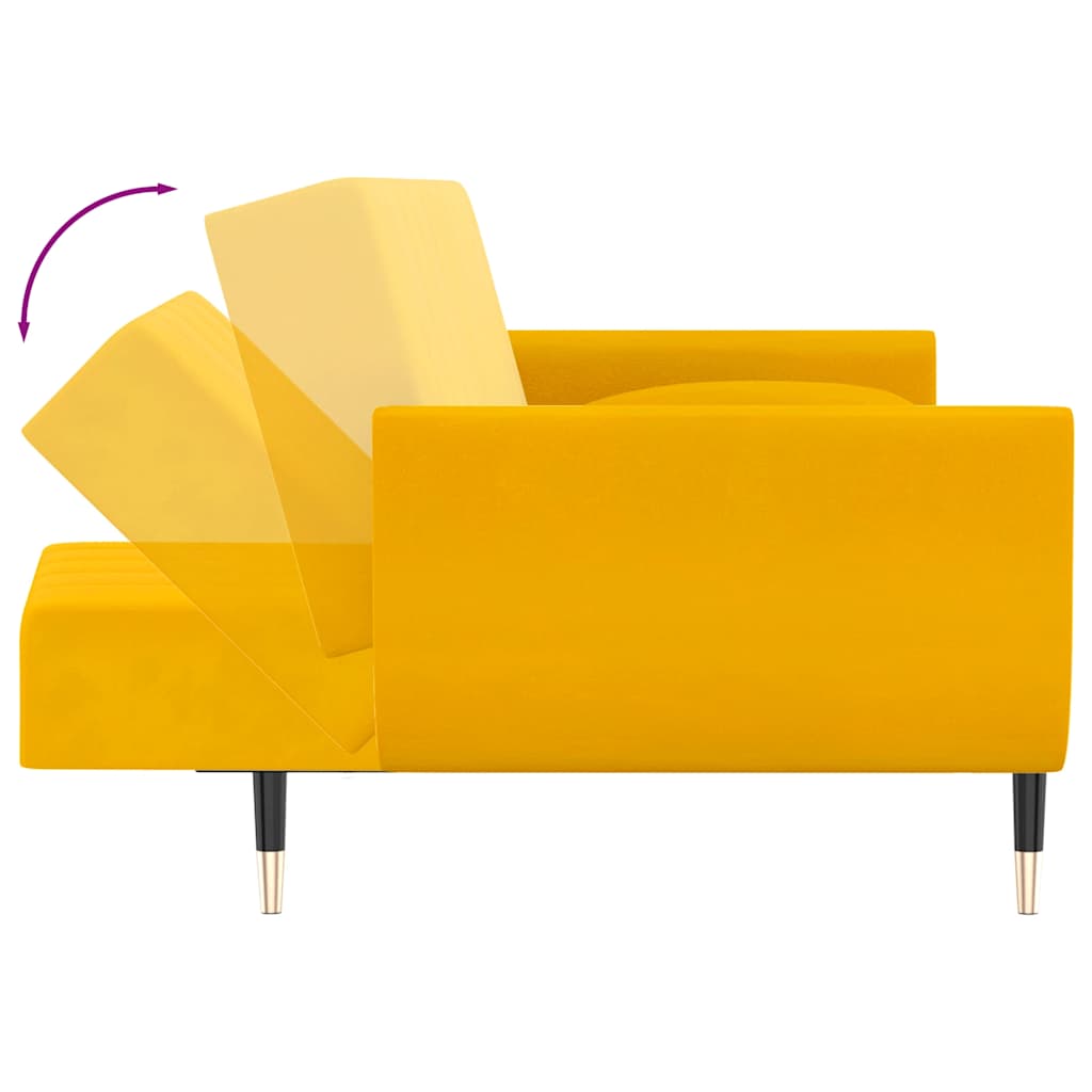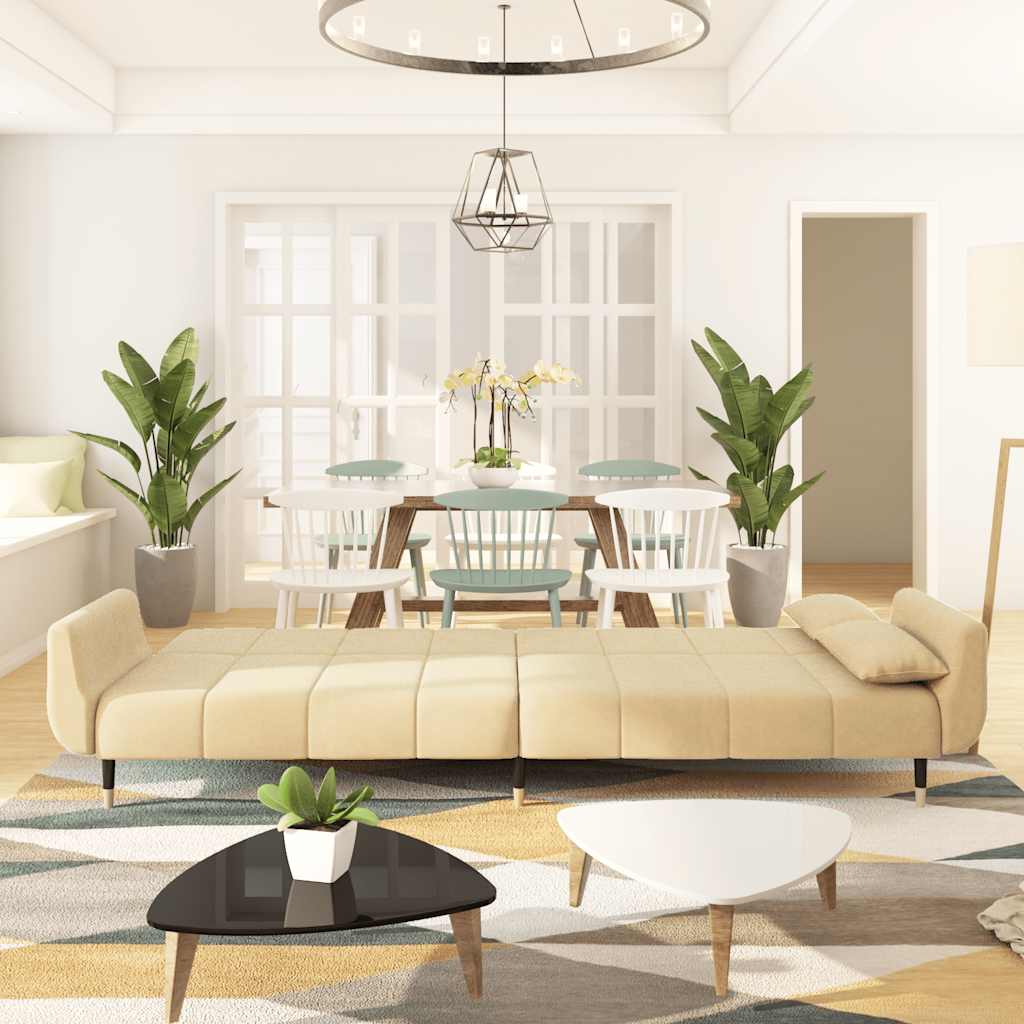 Dieses Sofa lässt sich einfach in ein Bett umwandeln. So können Sie je nach Ihren Vorlieben zwischen Sitz-, Lounge- oder Schlafposition auswählen. Es ist das ideale Möbelstück, wenn Sie zusätzlichen Schlafplatz für Freunde oder Übernachtungsgäste benötigen. Weiches und angenehmes Material: Samt ist ein weicher, luxuriöser Stoff, der sich durch einen dichten Flor aus gleichmäßig geschnittenen, weichen Fasern kennzeichnet. Samtstoff fühlt sich besonders weich und angenehm an.Verstellbare Rückenlehne: Sie können die zwei separaten Rückenlehnen teilweise oder ganz nach unten schieben, um den idealen Platz für ein Nickerchen oder ein Doppelbett zu schaffen.Robuster und stabiler Rahmen: Der Holzrahmen und die Metallbeine des Schlafsofas sorgen für Standfestigkeit und Sicherheit.Hocker für mehr Komfort: Für zusätzlichen Komfort ist auch ein Hocker im Lieferumfang enthalten!