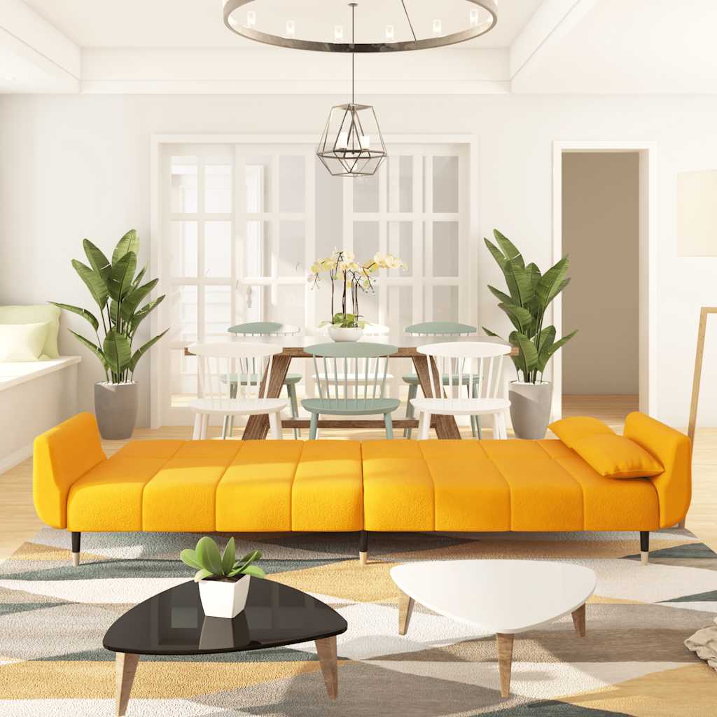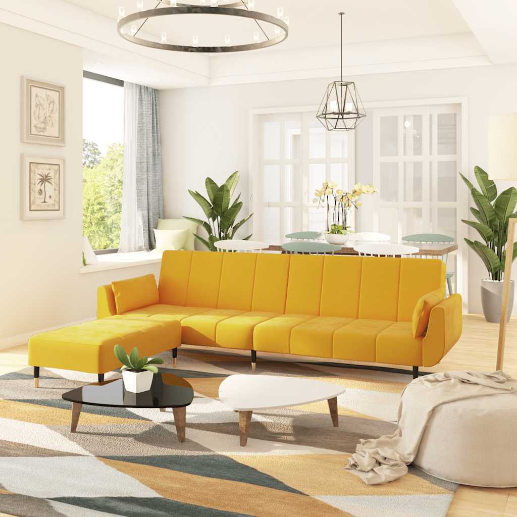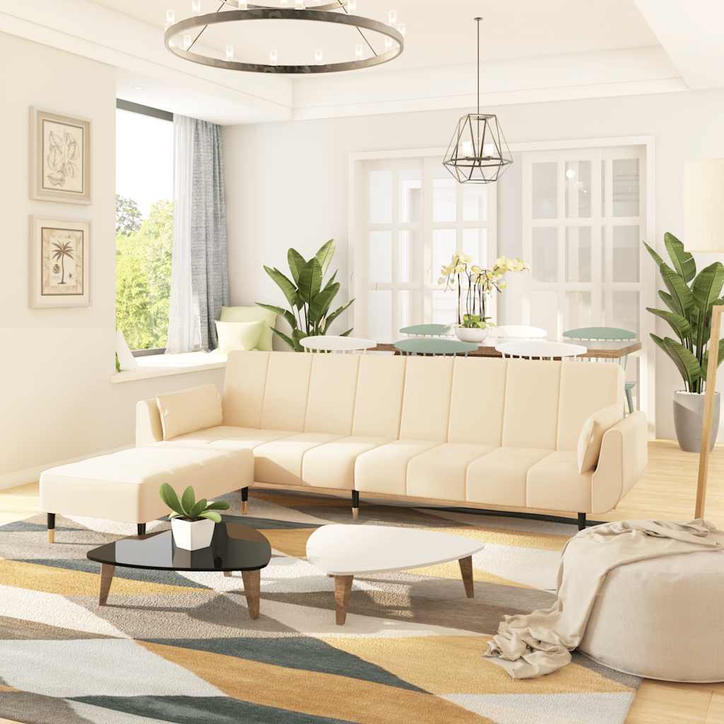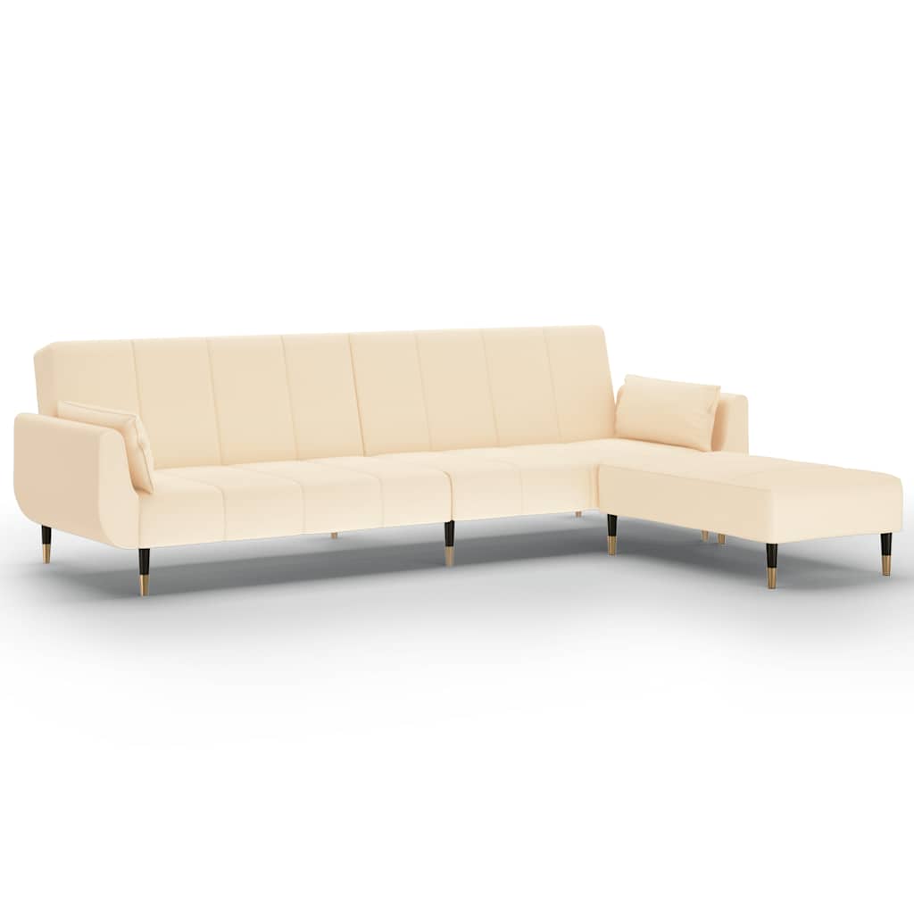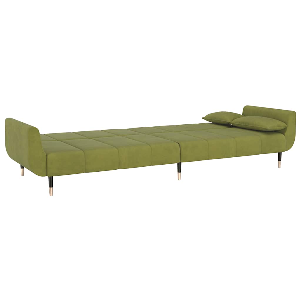 Dieses Sofa lässt sich einfach in ein Bett umwandeln. So können Sie je nach Ihren Vorlieben zwischen Sitz-, Lounge- oder Schlafposition auswählen. Es ist das ideale Möbelstück, wenn Sie zusätzlichen Schlafplatz für Freunde oder Übernachtungsgäste benötigen. Weiches und angenehmes Material: Samt ist ein weicher, luxuriöser Stoff, der sich durch einen dichten Flor aus gleichmäßig geschnittenen, weichen Fasern kennzeichnet. Samtstoff fühlt sich besonders weich und angenehm an.Verstellbare Rückenlehne: Sie können die zwei separaten Rückenlehnen teilweise oder ganz nach unten schieben, um den idealen Platz für ein Nickerchen oder ein Doppelbett zu schaffen.Robuster und stabiler Rahmen: Der Holzrahmen und die Metallbeine des Schlafsofas sorgen für Standfestigkeit und Sicherheit.Hocker für mehr Komfort: Für zusätzlichen Komfort ist auch ein Hocker im Lieferumfang enthalten!