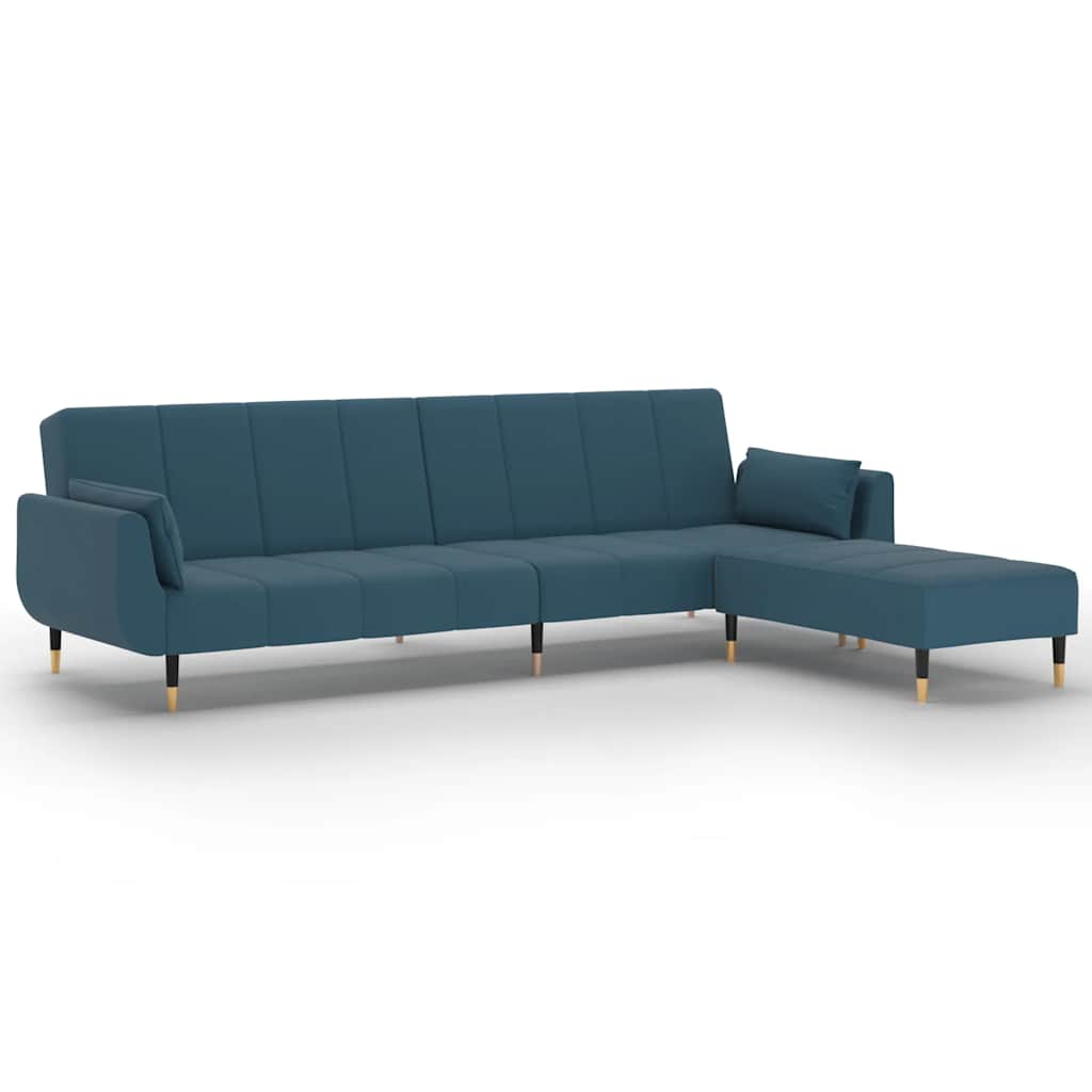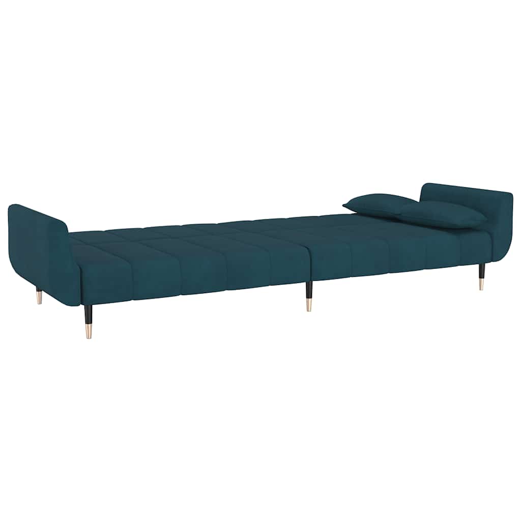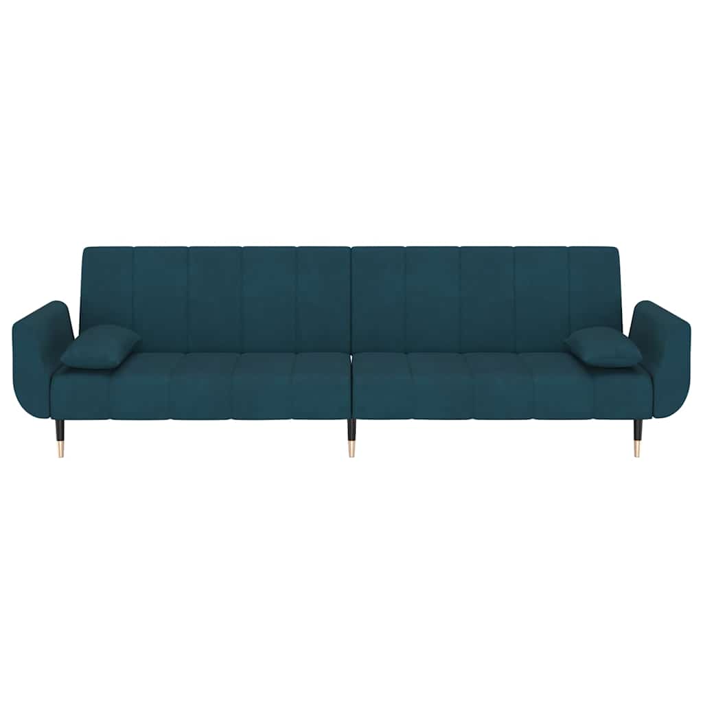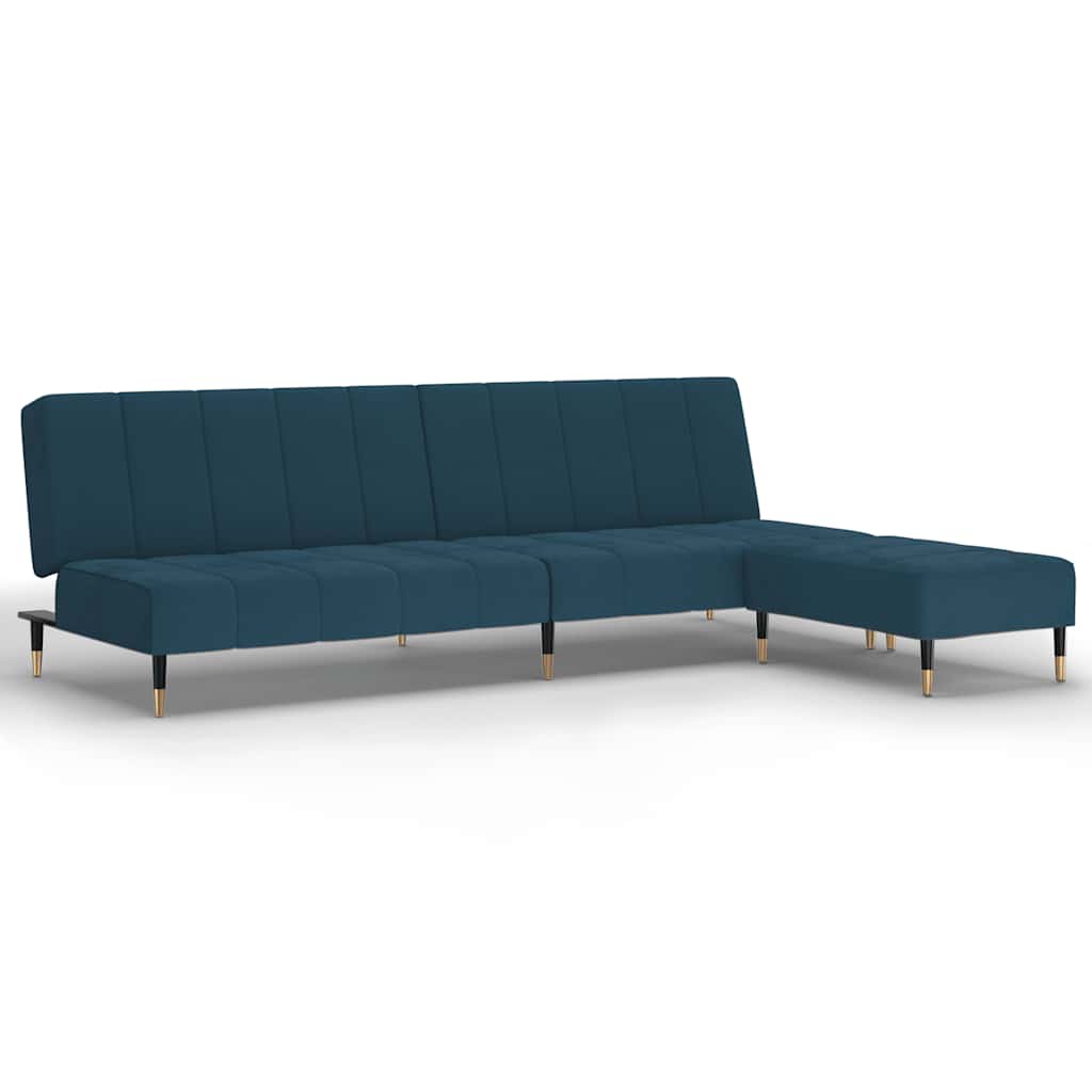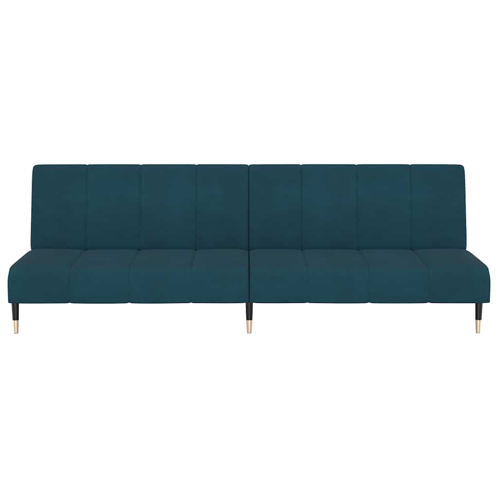 Schlafsofa 2-Sitzer mit Hocker Blau Samt