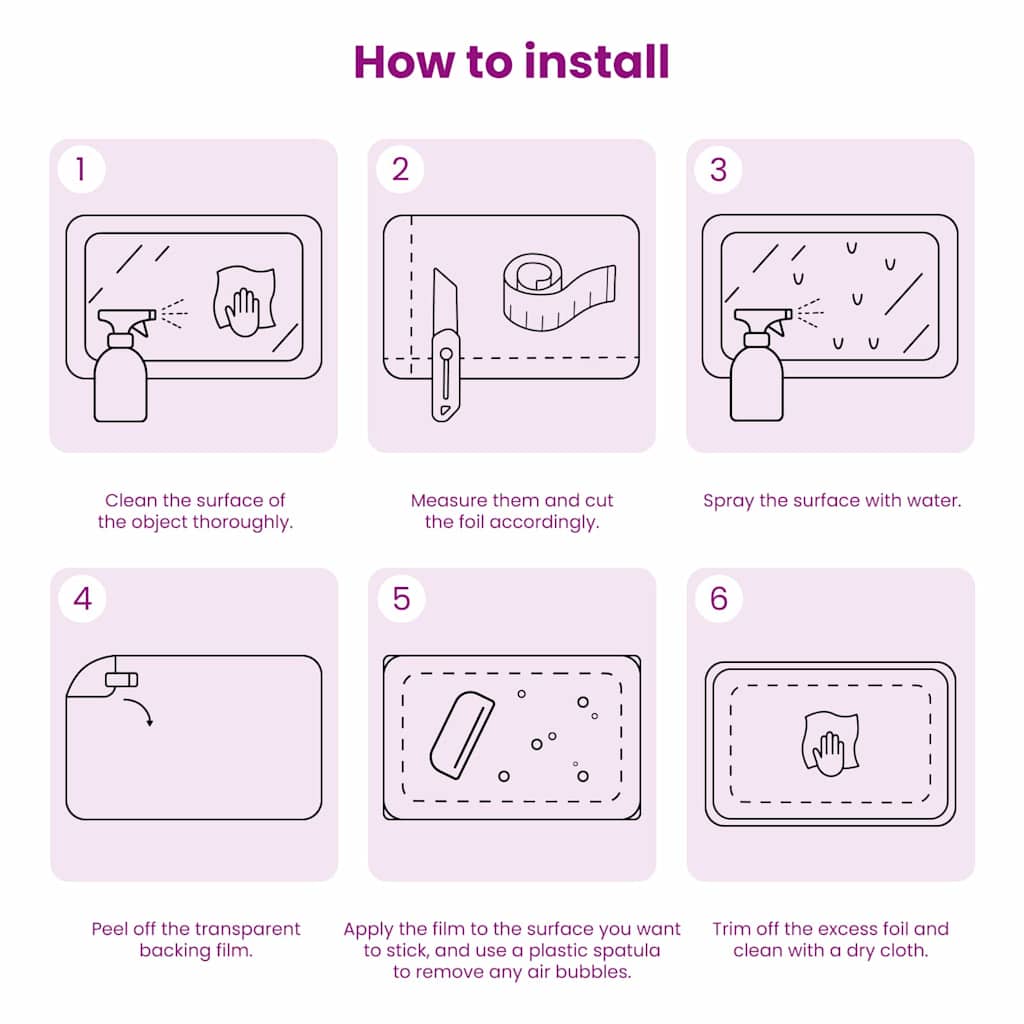 Schaffe zusätzliche Privatsphäre auf stilvolle Weise mit dieser Sonnenschutzfolie. Schutz der Privatsphäre: Die Sichtschutzfolie sorgt für einen Spiegeleffekt, indem sie tagsüber das Licht reflektiert. So kannst du deine Privatsphäre schützen und hast gleichzeitig eine großartige Einwegsicht.UV-Schutz und Blendschutz: Diese Fensterfolie kann Hitze und Blendung reduzieren, für eine bessere Isolierung sorgen und schädliche UV-Strahlen herausfiltern, wodurch ein angenehmeres Raumklima entsteht. Sie kann auch die Alterung und das Verblassen von Möbeln verlangsamen.Mehrere Anwendungen: Die Fensterfolie lässt sich in verschiedenen Räumen wie Schlafzimmern, Küchen, Wohnzimmern, Büros usw. einsetzen.Praktischer Einsatz: Die wärmereflektierende Fensterfolie lässt sich leicht auf verschiedene Formen zuschneiden, um deinen Bedürfnissen gerecht zu werden.Tipps zur Anbringung: Reinige die Oberfläche des Objekts gründlich. Vermesse sie und schneide die Folie entsprechend zu. Besprühe die Oberfläche mit Wasser. Ziehe dann die transparente Trägerfolie ab. Bringe die Folie auf der zu beklebenden Fläche an. Verwende einen Spachtel aus Kunststoff, um Luftblasen zu entfernen. Wische danach das Wasser mit einem Tuch ab. Gut zu wissen:Das Produkt sollte auf eine glatte Oberfläche aufgetragen werden.Der Spiegeleffekt wird nachts umgekehrt, da der Innenraum mehr Licht als der Außenbereich ausgesetzt ist, sodass Vorhänge während der Nacht notwendig sind.
