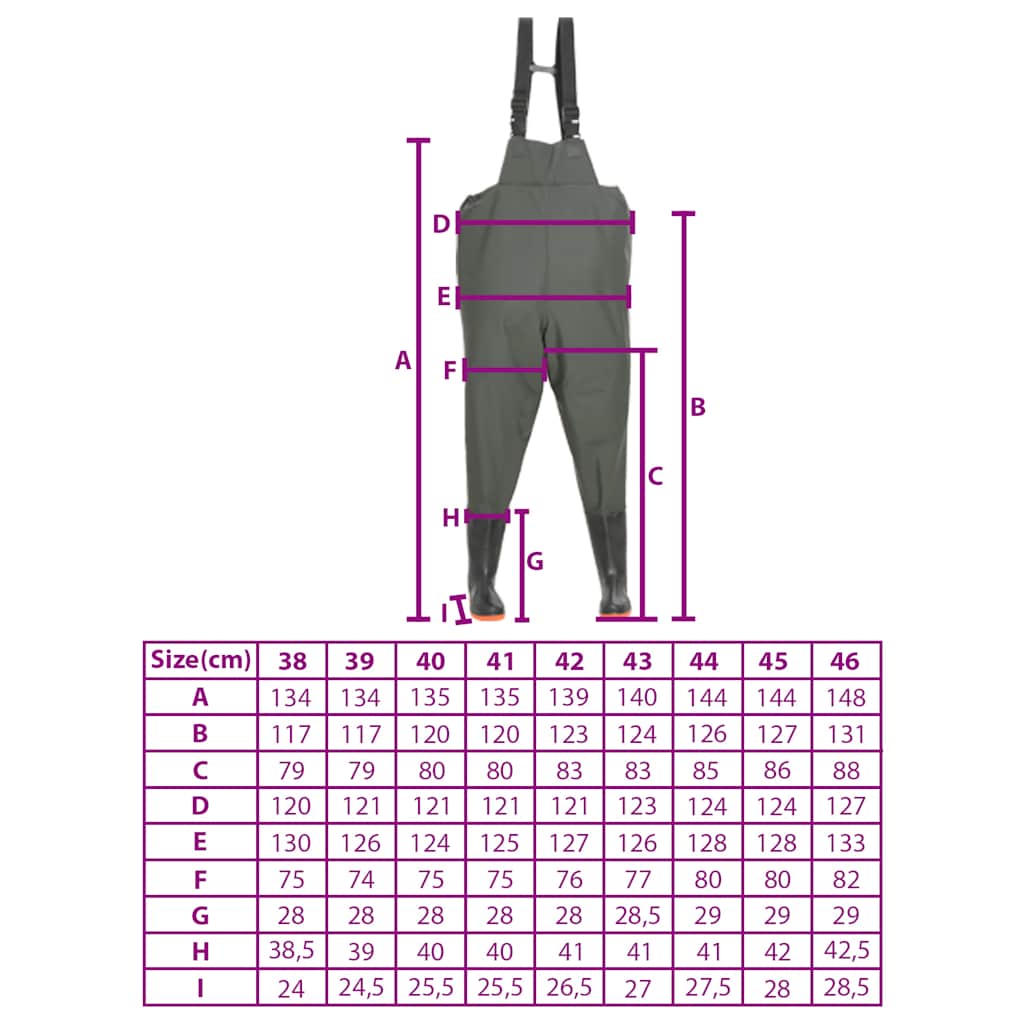 Bleiben Sie beim Angeln mit unserer Wathose trocken. Dieses spezielle beschichtete Polyestergewebe ist innen angenehm kuschelig und gleichzeitig außen robust. Dank ihrer gesteppten und abgedichteten Nähte sowie der daran befestigten Stiefel sind unsere Wathosen 100% wasserdicht. Zudem sorgen die Schulterträger dieser Anglerhose für eine perfekte Passform und optimalen Tragekomfort. Hinweis: Für eine perfekte Passform, überprüfen Sie bitte die Größentabelle sorgfältig vor dem Kauf. Wenn Sie breite Füße haben oder dicke Socken tragen werden, wählen Sie bitte EINE GRÖSSE GRÖSSER als gewöhnlich.