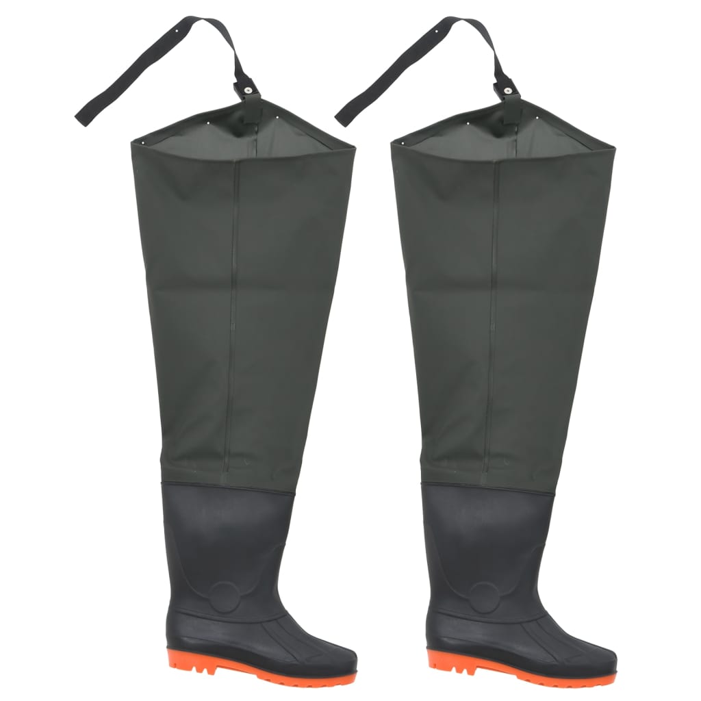 Die Hip Waders sind langlebig und flexibel und eignen sich zum Angeln, Jagen, für die Arbeit in der Landwirtschaft und mehr. Verstellbar und komfortabel: Diese Wathose hat verstellbare Hosenträger, die ein einfaches und schnelles An- und Ausziehen der Waders ermöglichen. Außerdem sorgen die Trageriemen für eine perfekte Passform und optimalen Tragekomfort.Wasserfest: Das speziell beschichtete Polyestergewebe ist von innen angenehm kuschelig und außen robust. Dank der gesteppten und versiegelten Nähte und der angebrachten Stiefel sind die Wathosen wasserbeständig.Vielseitig einsetzbar: Diese Hip Waders sind ideal für Angler und Landwirte, für Spaziergänge im Watt, im Wald und auf dem Land, aber auch für die Jagd usw.