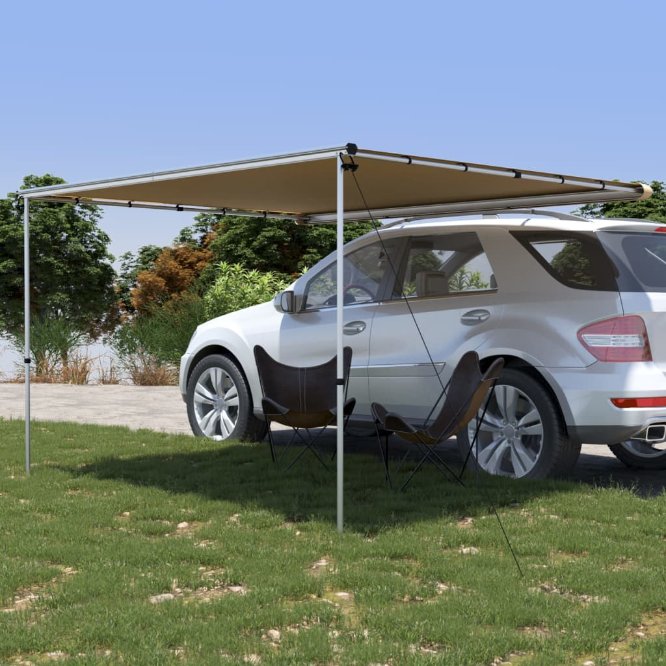 Mit ihrer stabilen Struktur eignet sich diese Wohnwagen-Markise für Camping, Autoreisen, Sportveranstaltungen und Feste. Die Markise verfügt über robuste Aluminiumröhre, die eine hohe Stabilität gewährleisten. Sie bietet gleich neben Ihrem Fahrzeug einen idealen Unterschlupf und Schutz vor direkter Sonneneinstrahlung und UV-Strahlen, sodass Sie sorgenlos campen oder sich einfach im Schatten entspannen können. Die Wohnmobil-Markise lässt sich einfach transportieren und lagern und nimmt nicht viel Platz ein. Darüber hinaus ist die mitgelieferte Aufbewahrungstasche wasserdicht.
